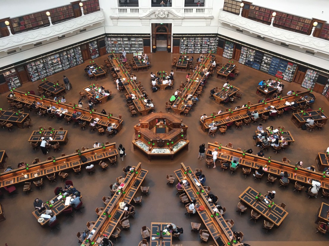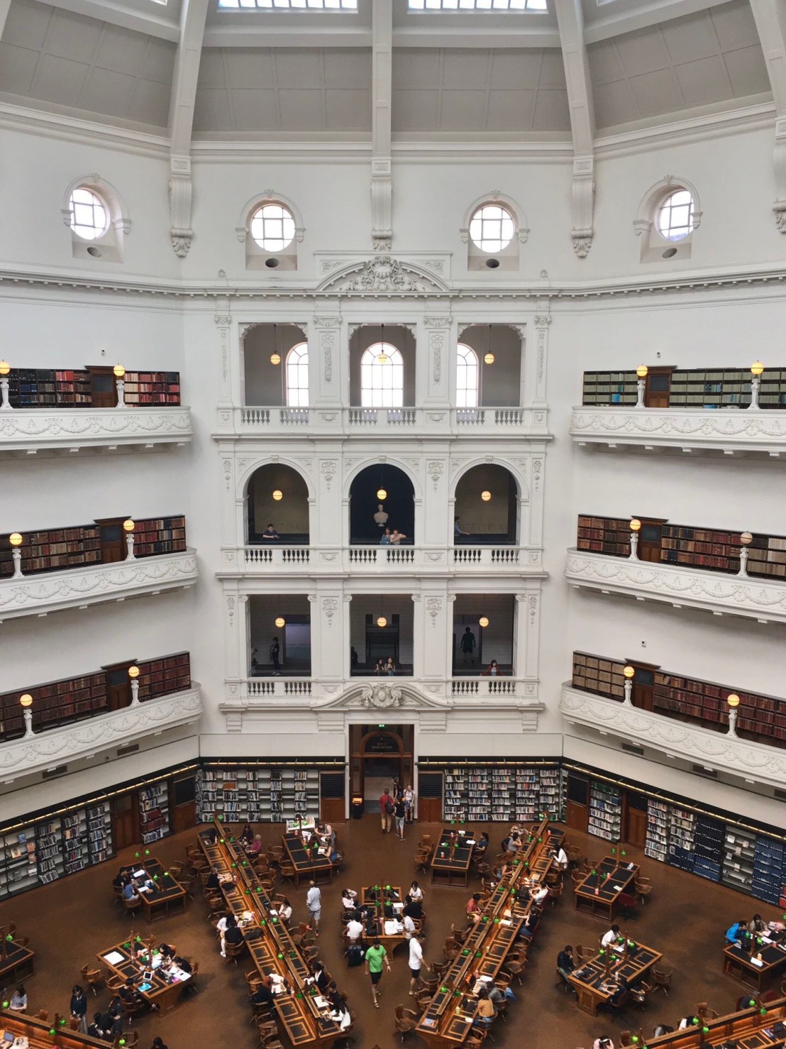 Obligatory shot of the #DomedReadingRoom attge @library_vic from the top- it’s actually very high up ! For a place that had to house thousands of books, that’s a lot of empty space ! But very glad it’s there. Designed by Norman Peebles of #BatesPeeblesAndSmart, #JosephReed’s firm as it was in 1913. At 35.5 metres it was the largest conc dome in the world ! except it wasn’t – the 69m wide #JahrHundertHalle in what was then German Breslau, was completed in May 1913, our was opened in Nov. Myth busted !