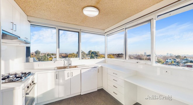 Toorak Park Towers, Sydney Street, Armadale, 1974 another design by Sol Sapir, king of the first high rise boom. The exterior is pretty much a repeat of his 1968 Miami on Beaconsfield Parade, pic 2; then Toorak vs Miami closer up. I like the way the panels kind of stop short of each other, and the deeply inset corner columns, allowing continuous windows, and a large corner kitchen with a view. Also nice they actually do face a park, or at least the front ones do. They’re pretty spacious, and about the same price as a more squeezy new build.