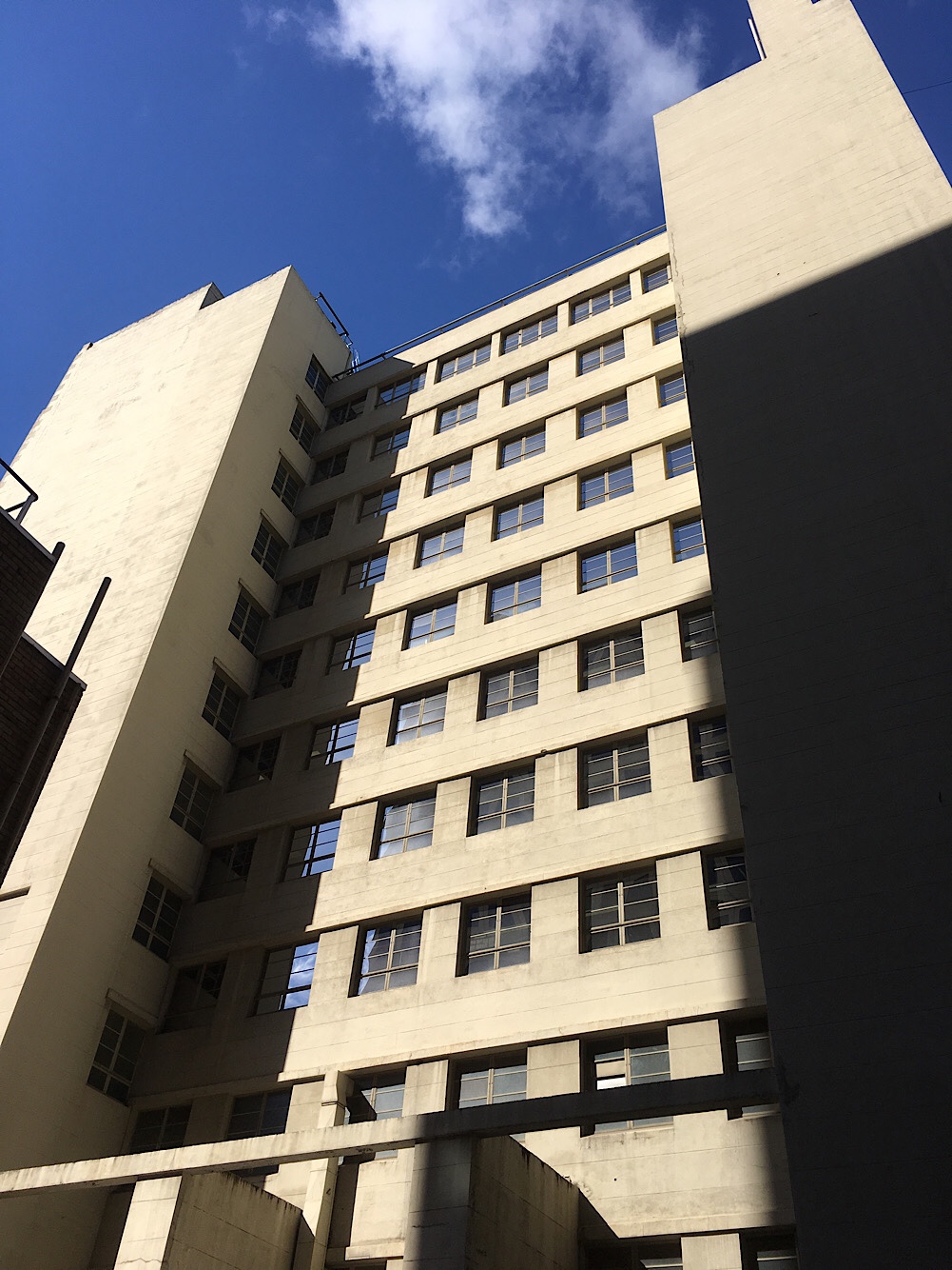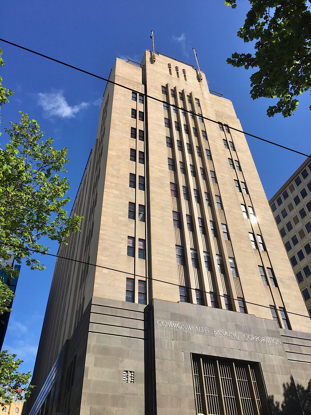 Melbourne Gotham, one of the interwar towers that manages to look like an #ArtDeco skyscraper even though built under the #132ftHeightLimit (40m). Designed by the Commonwealth Dep of Works for the #CommonwealthBank, and competed 1941. I like how it’s one-sided, all nicely detailed on the laneway side, but the other side is quite visible, an inset #lightwell, all plain concrete and #steelframedwindows. That view will soon be lost, the @cityofmelbourne is building a new thing there and behind, it’ll be huge !