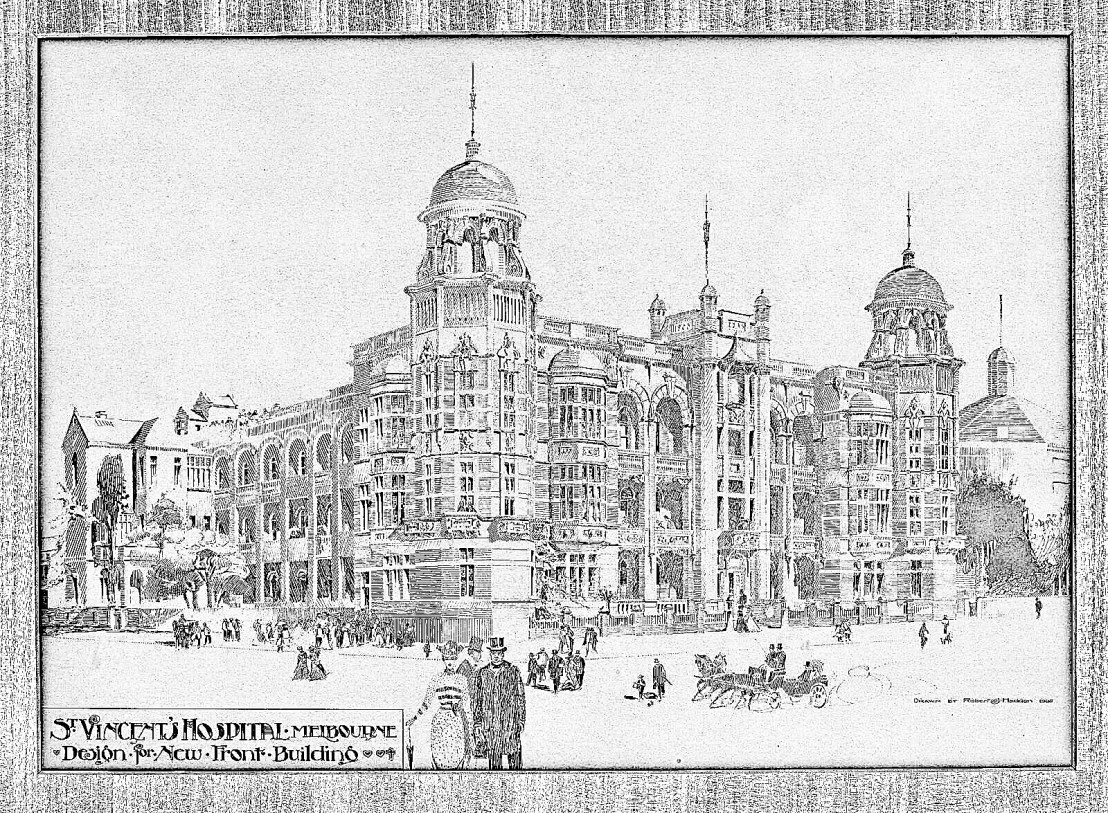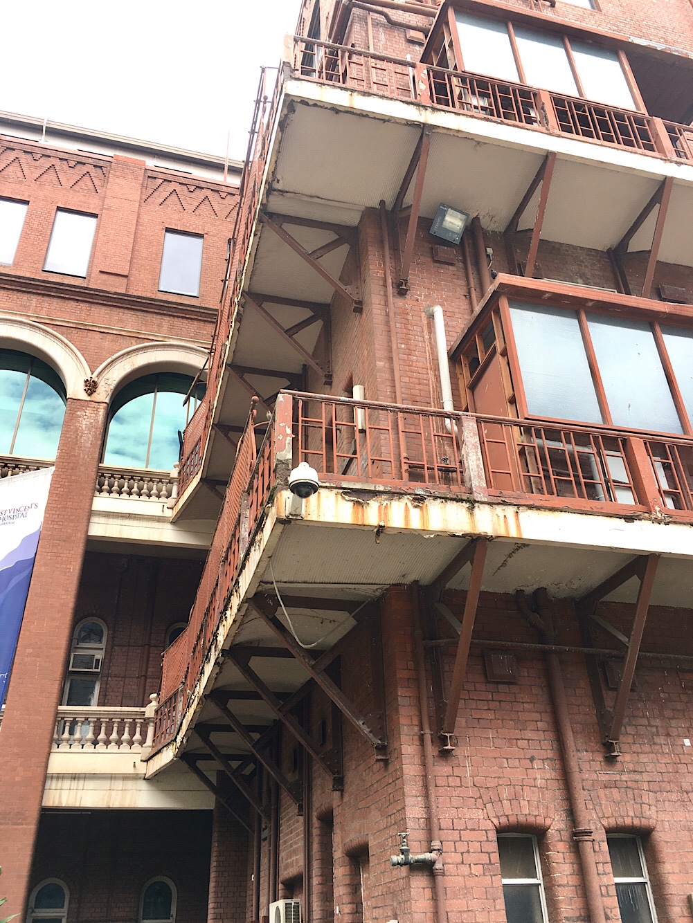This slightly crappy back end of St Vincents Hospital Melbourne is actually the most historic part, and one of the first ‘modern’ hospital blocks in Vic that’s still around, with generous balconies for patients to sit on, away from the germs that everyone had finally accepted were real. Built in 1905, designed by PA Kennedy and DC Askew (formerly of #TwentymanAndAskew) it took the patients out from converted terraces where it started 8 years before. It was always meant to be stage 1, check out the arch poking out by itself, and as soon as it was finished they made grand plans to add a big frontage, designed by none other than #RobertHaddon – but nothing happened for another 30 years.