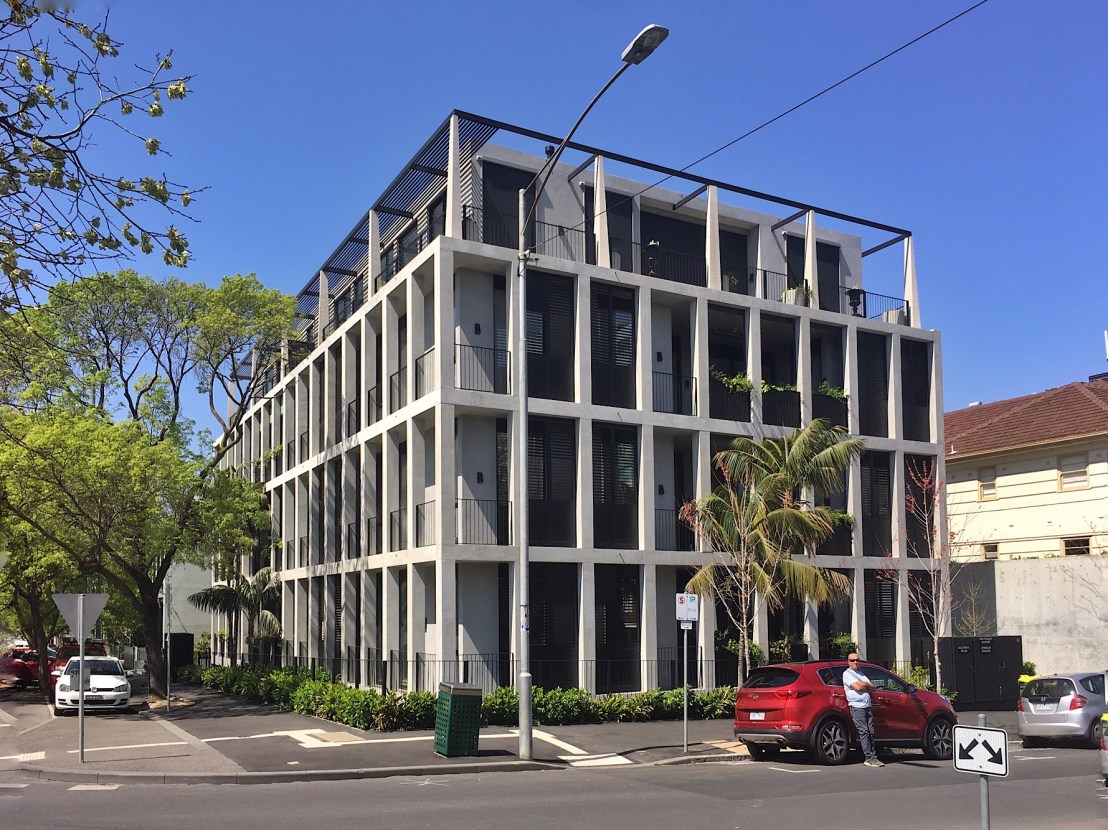 Definitely an improvement on the “daggy 70s brick motel” that preceded it but I’m mostly glad it didn’t impinge upon 22 Powlett St (next door, visible in the first couple of photos) which was built in 1936 for the famous Tait family (Elizabeth Tait lived nearby at 60 Clarendon Street) as a 16-apartment block, later (much later) remodelled into 8. My late mother lived in 4 x different apartments in that block, and I’m very pleased it’s still there!