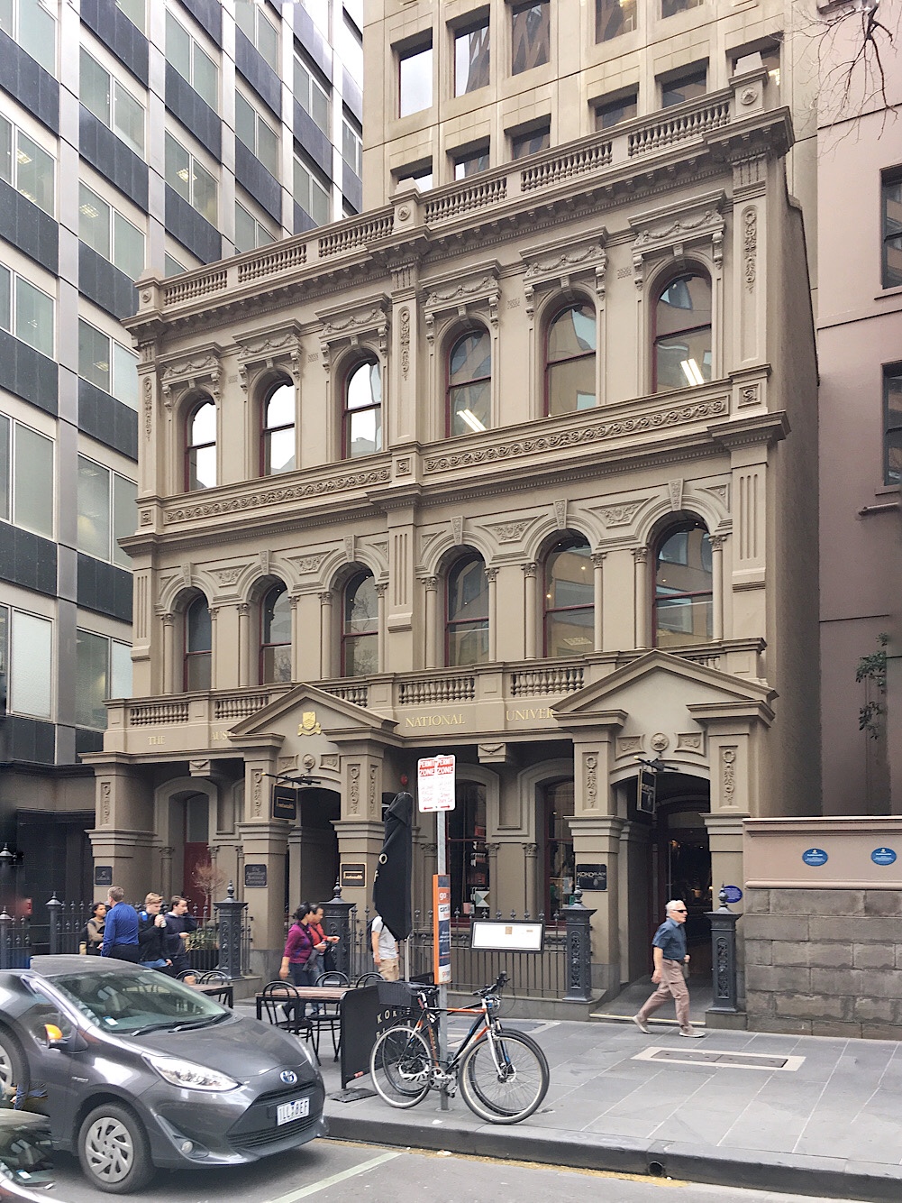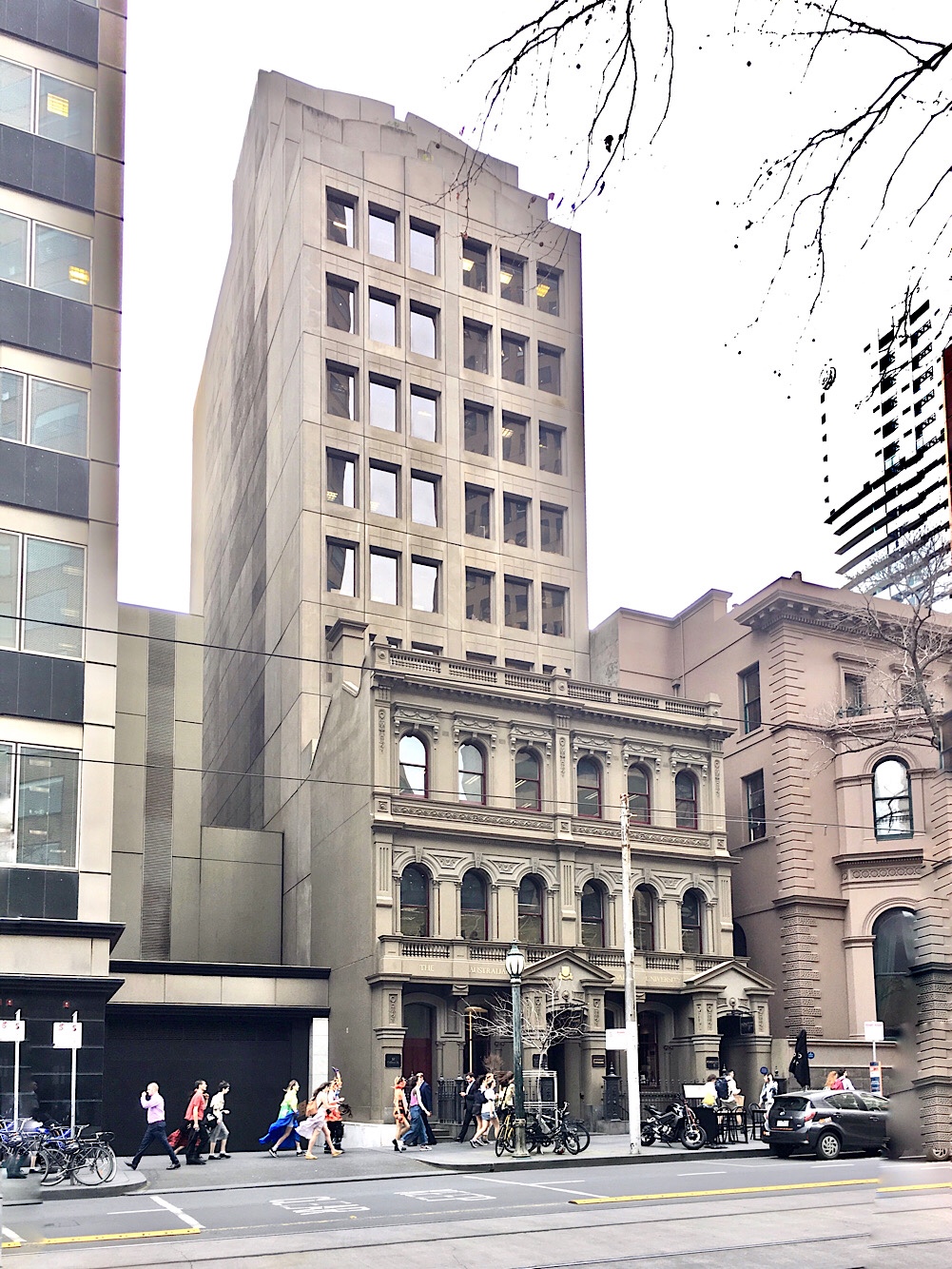 #MelvilleHouse, one of the few big houses/terrace houses built for the medical profession in the 19th century, when the #parisend was the Harley St of Melbourne. They were built for Dr Ray in 1881, and designed by #NathanielBillings, in a fairly elaborate #RenaissanceRevival. They were knocked over her and shops put in in 1927, and I found a few old photos but none before WW2. Theyre 1985, 1978, and 1956, when lots of Melbourne’s Victorian architecture was largely black with years of uncleared grime. Surprised that they’re on the #VictorianHeritageRegister, though that happened in 1985 when prob there was concern that they might be demolished. Only the fronts were #heritagelisted and kept, and the ground level rebuilt Victorian style, but with odd details, and not the original cos nobody knows what it was like. I like it, suitably detailed, but a trained eye (like mine!) can tell it’s not actually Victorian.