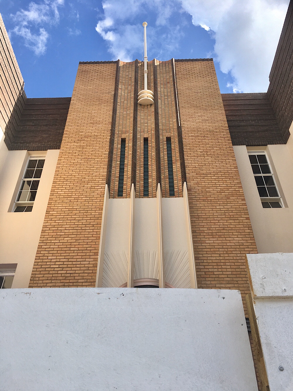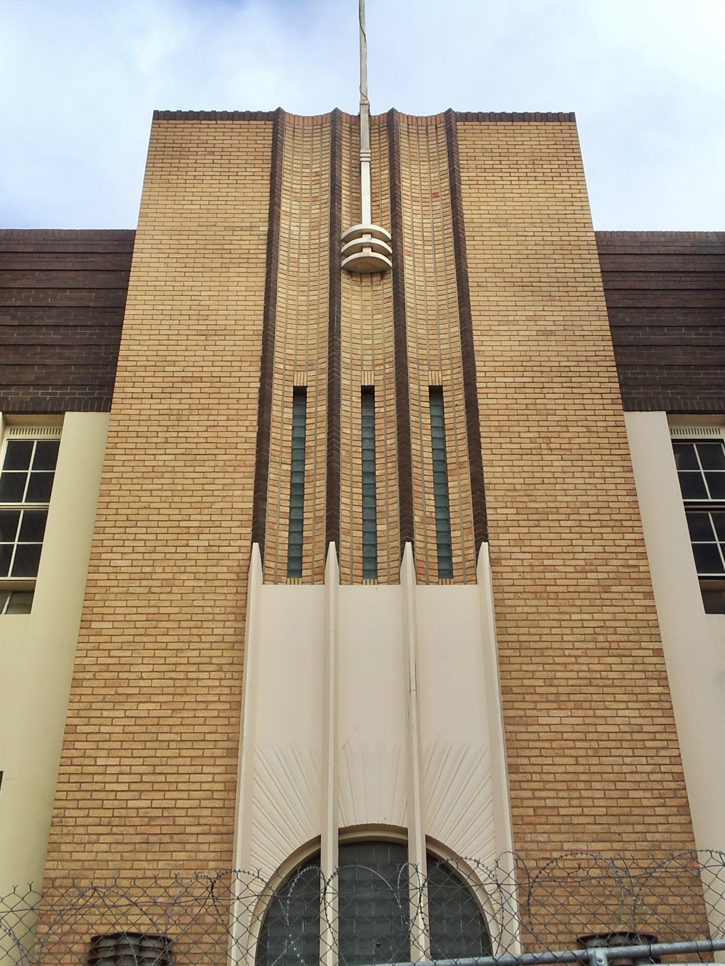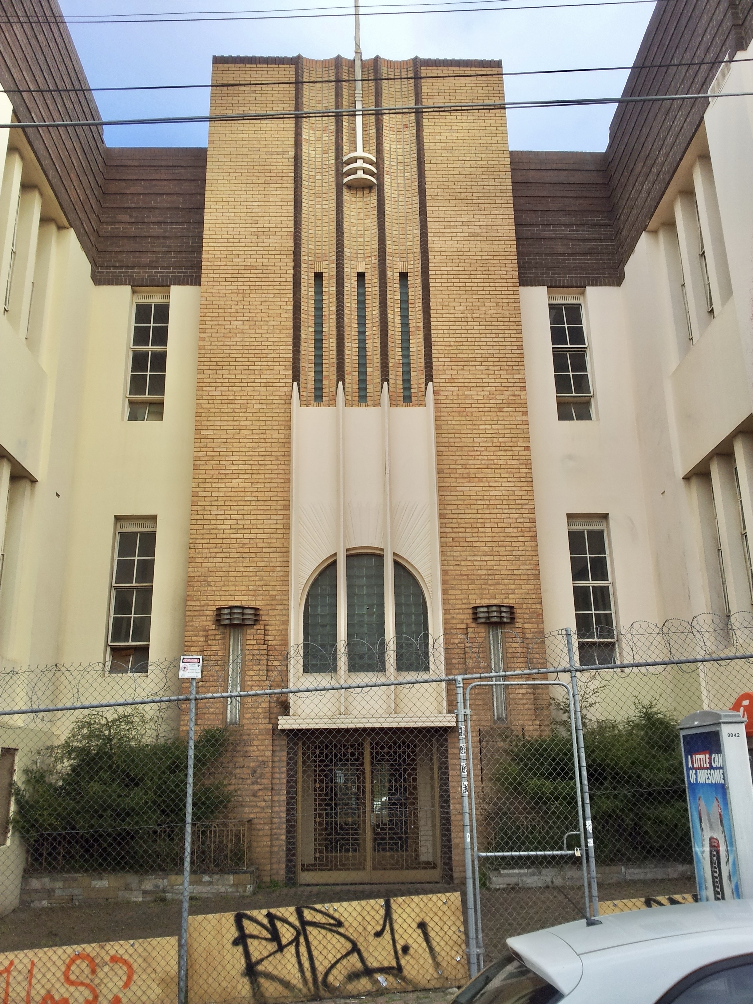 I guess they havnt quite finished turning the old #CollingwoodTech into the #CollingwoodArtsCentre just yet, I had to take this through a gap in the hoarding. One if the more unusual designs by #PublicWorks Chief Architect #PercyEverett, this interesting arched and vertically finned entry was added in 1938 to an earlier red brick tech school building. I’ve collected loads of other peoples photos of Everett’s work on my Pintrest page if you’re interested, just google his name and mine.
