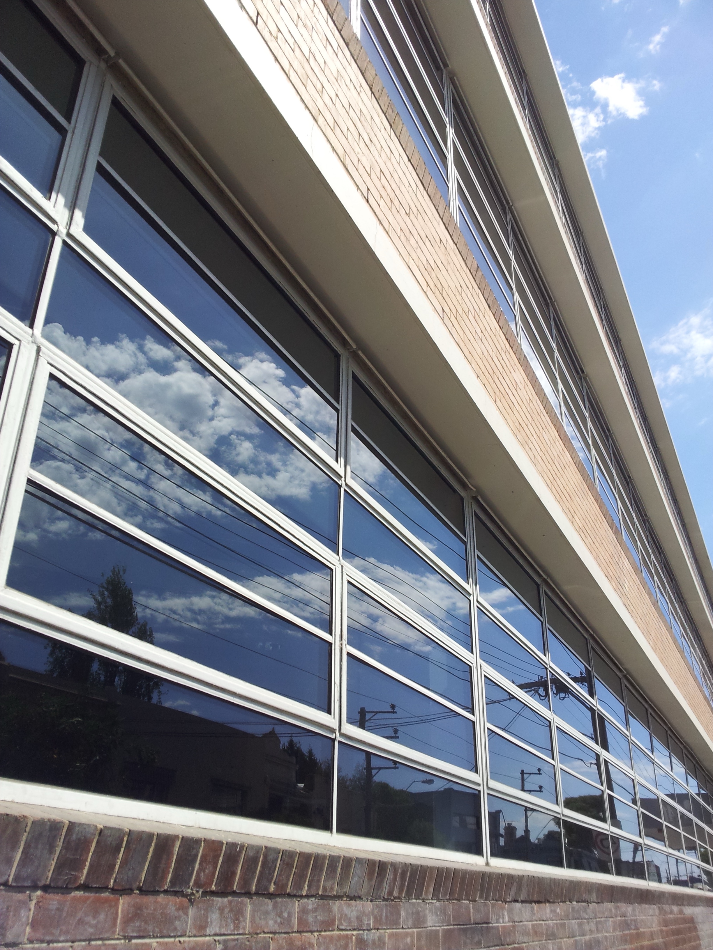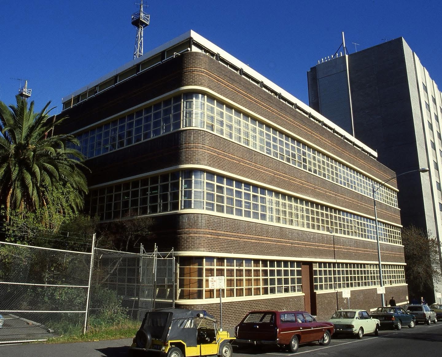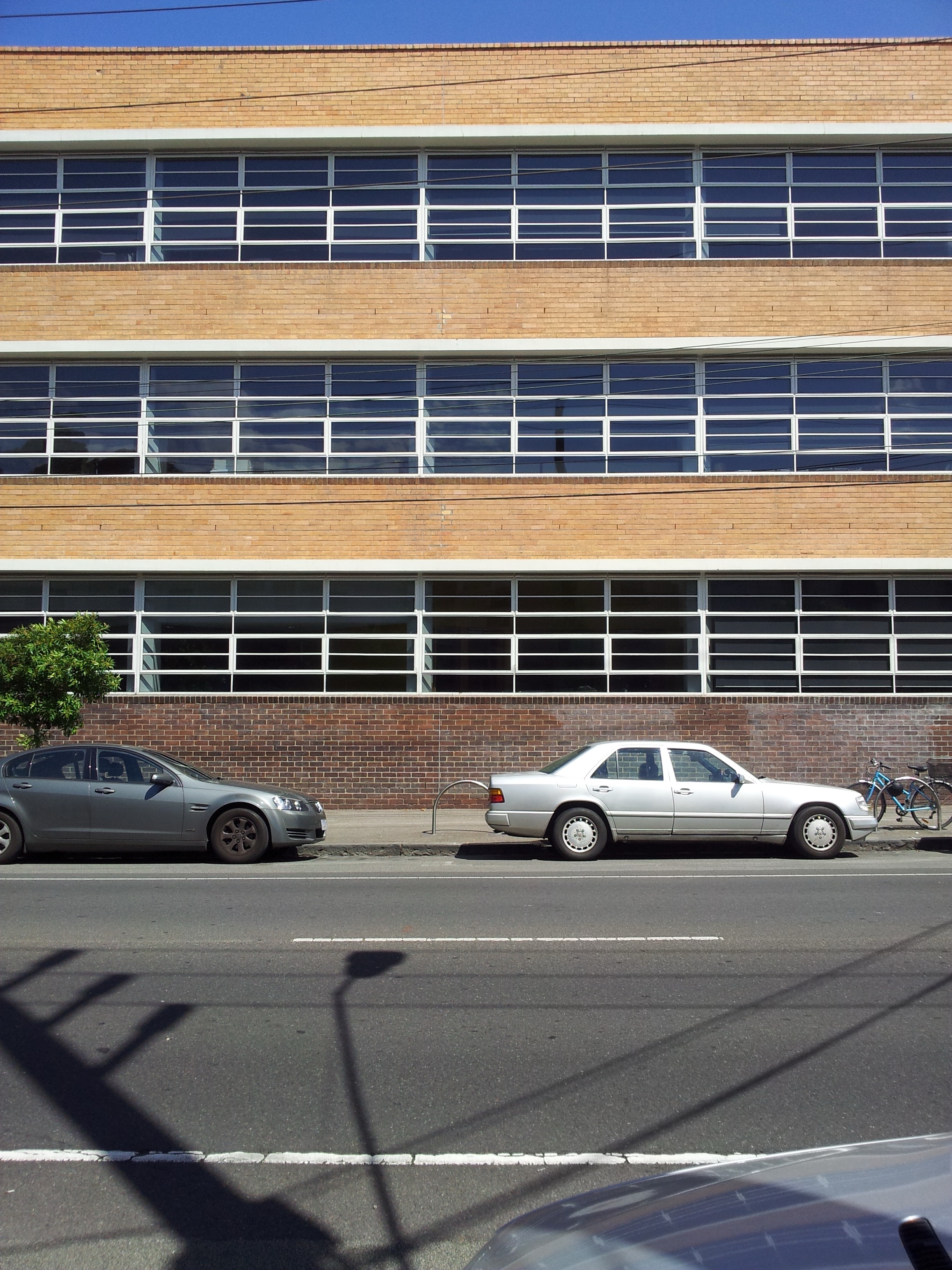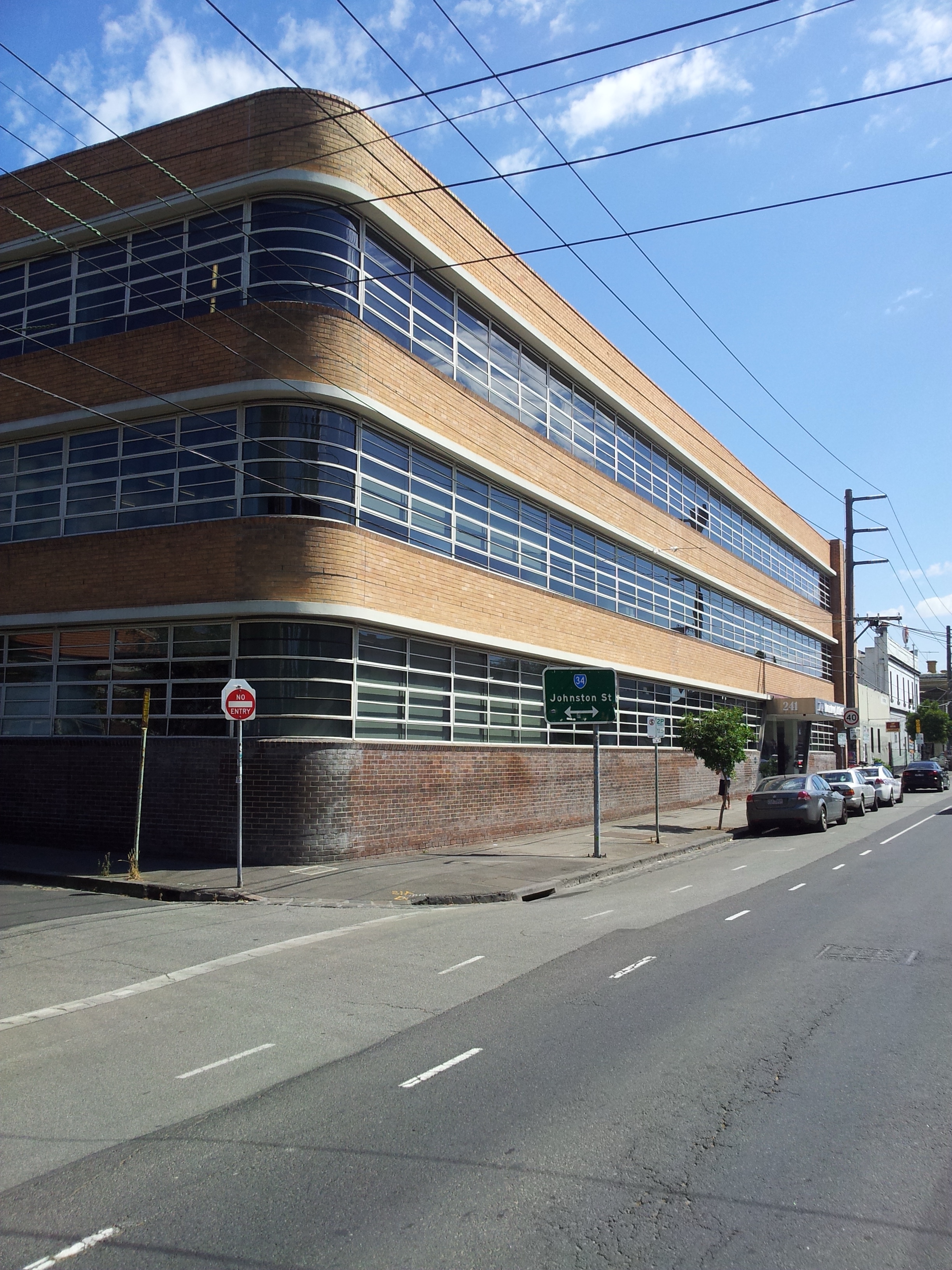 Fully streamlined in Wellington Street – the Boot School of the ex Collingwood Technical School, yet another work by the great Percy Everett of the Victorian Public Works Department. Built 1945 after the old one burned down; the only major construction allowed for ages after the war was public buildings like colleges and schools, often by Everett. The design here pretty much repeats his RMIT Bowen Street buildings of 1937-41 (last pic), but I’m not complaining. The entry here has a square motif rather than fully Deco. I took the photos in 2014, not long after the #steelframed #windows were nearly lost when the building was converted to become melbs first neighbourhood justice centre, a referb by @lyonsarchitecture, but luckily they got a rare #heritagegrant. They added a new entrance, with their signature angles, but with the simple canopy, it’s not too intrusive.