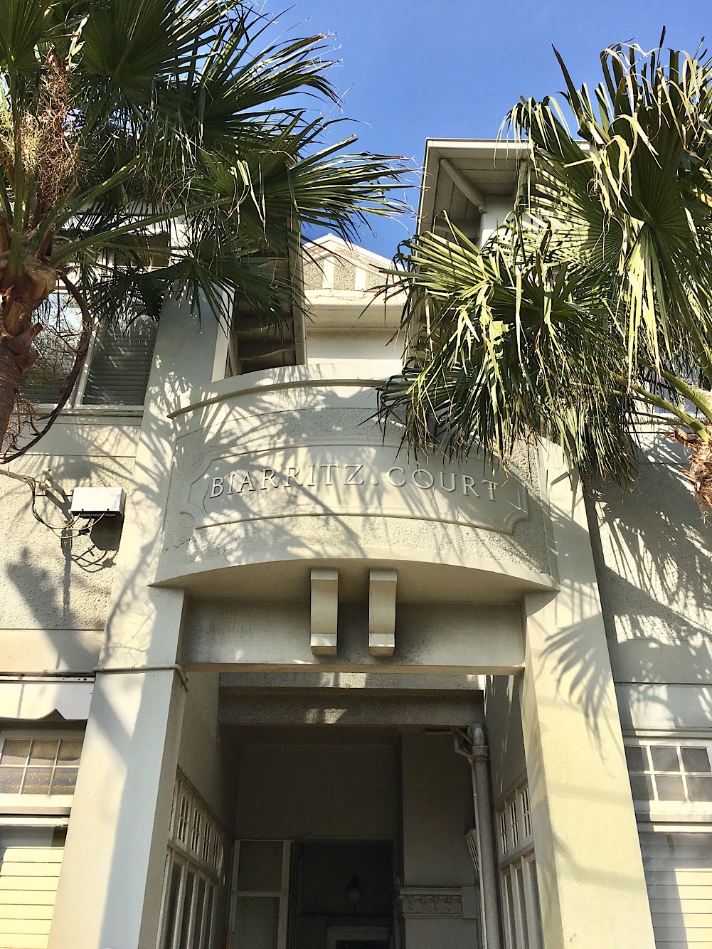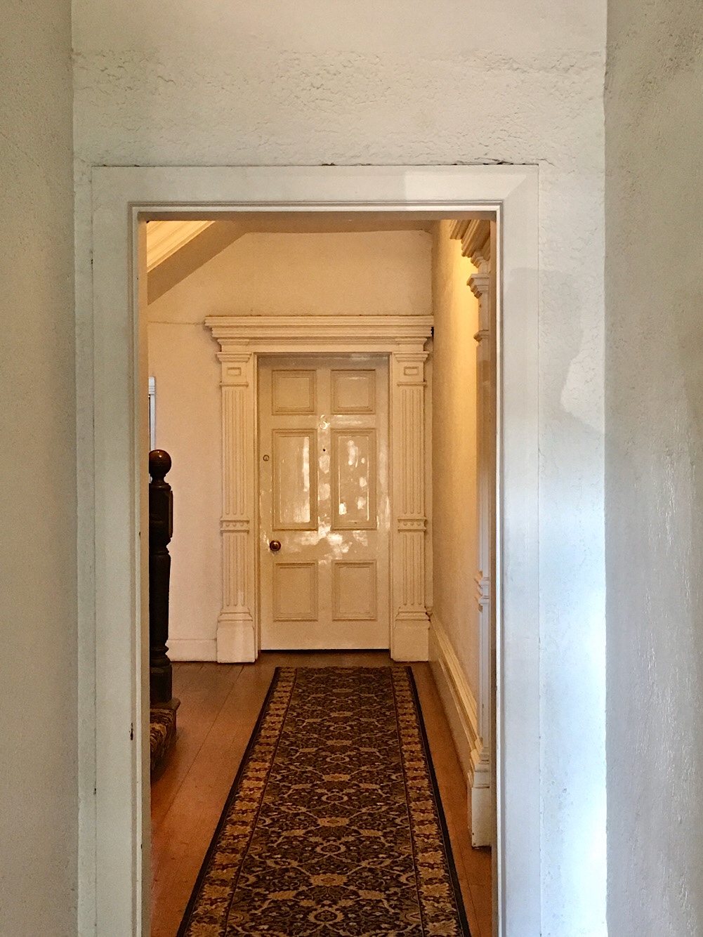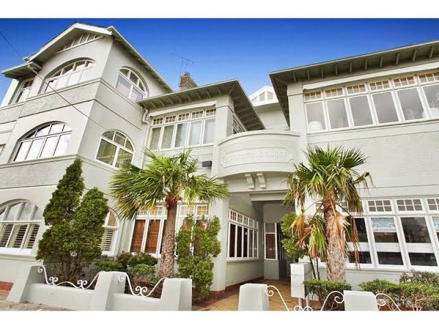 You peek in the door of a block of 1920s #StKildaFlats, and … a Victorian hallway, complete with the floorboards and doors ! #BiarritzCourt at 360 #BeaconsfieldParade is built around and in an 1870s house, looks like it was typical two storey symmetrical, and then architect #ArchibaldIkin squeezed some long thin flats down one side, and converted the rest, even keeping the elaborate ceiling in what was a grand dining room maybe ? Now flat no 1.