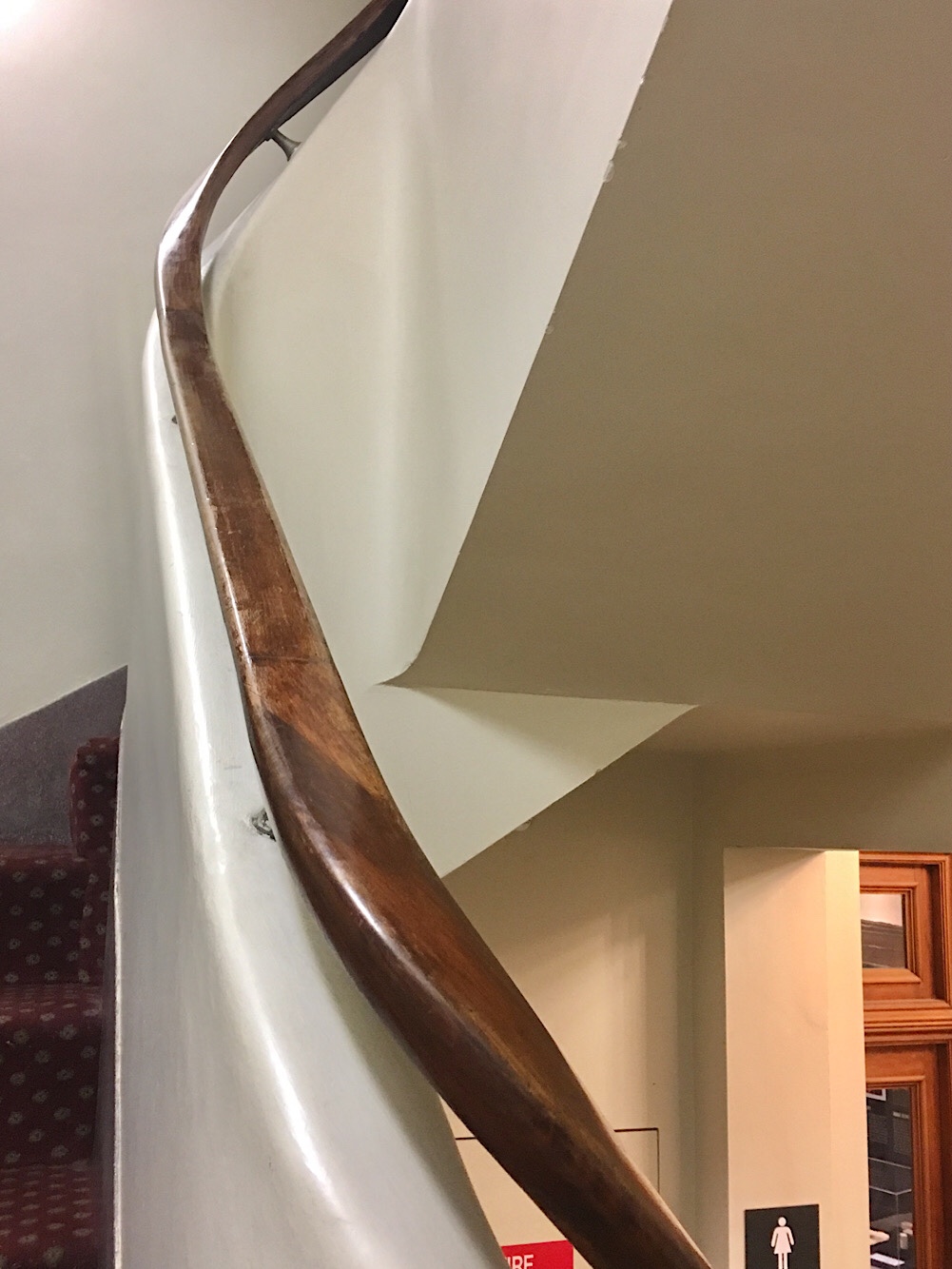 In the middle of the landmark 19thC #OldTreasuryBuilding there’s this staircase, added by #PercyEverett I think in the late 40s, and it’s great ! A symphony of curved plaster and timber. Not sure if it replaced an earlier one or what, it’s next to the lift so maybe they came together.