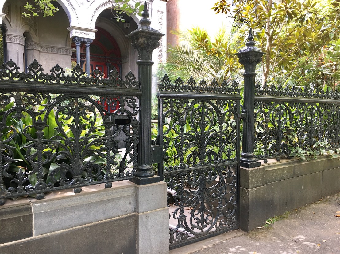 Fantastic #castironfence and gate at 20 #StVincentPlace, #AlbertPark. Would have been specially cast, since it’s panels not #pickets, on a high base, rarely seen in melbs (but typical of Adelaide), though likely still from a catalogue.