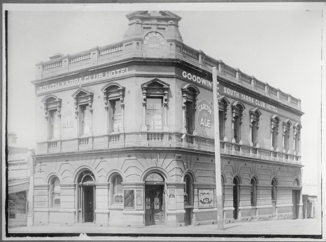 Repost 2020: Managed a snap of this landmark on Punt Road at Toorak Rd from the car passenger window, a #drivebyshooting. This was the South Yarra Club hotel, built in 1892, just as the 1880s boom was crashing. It replaced a nice weatherboard predecessor built c1853, the first pub in the area. A fine building for this busy corner, and what’s more quite intact, all the ground floor included, which is unusual. Prob lost some urns from the parapet. From the 80s it had a few names, Hatter’s Castle (1986), Trakkers Inn, and the Arcadia (1995). The big neon sign is a rare survivor, not heritage listed. Info and pics courtesy of the Stonnington History Centre and @library_vic, night shot thanks Marc Morel.