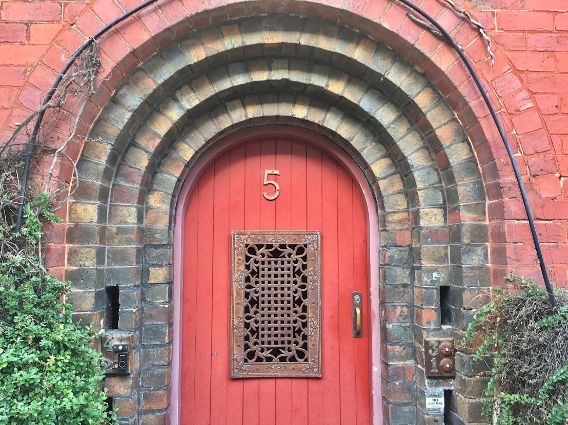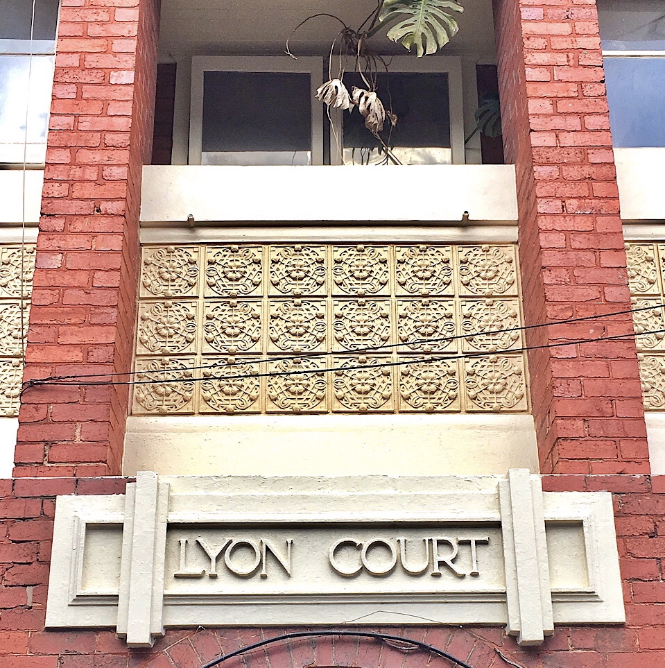 Lyon Court, a most unusual block of #StKildaFlats in Jackson Street nr Acland. Designer unknown. Port Phillip heritage study says c1920, but I’d say later; found some adds for flats to rent here in 1927, so bet it was built then. It has elements that can be traced back to the 1890s Chicago architect #LouisSullivan, namely the big arch and the panels of vaguely Celtic ornament, but it also has the horizontality of early Frank Lloyd Wright – but perhaps it’s mostly influenced by #walterburleygriffin, especially his even more horizontal #langiflats in Toorak of 1925/6 (last photo), which would tally with the 1927 date. It’s quite small, only 4, shallow block, tiny back yard, and appears to still be single owner, since I couldn’t find any sale notices.