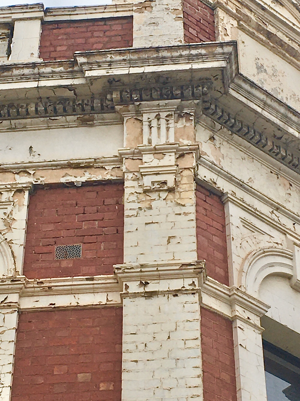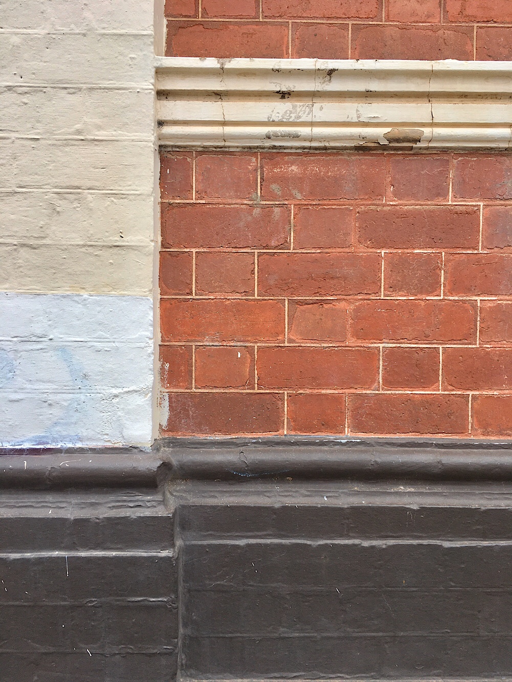 The bank I posted yesterday- so the paint covers ochre coloured render and #creambrick (why did they do that ??). Nice distressed look now but imagine all cleaned up as three colours/ textures. And maybe the base is bone bricks. And that door ! Belongs to a #bank for sure. Though it would have been to the manager’s residence upstairs.