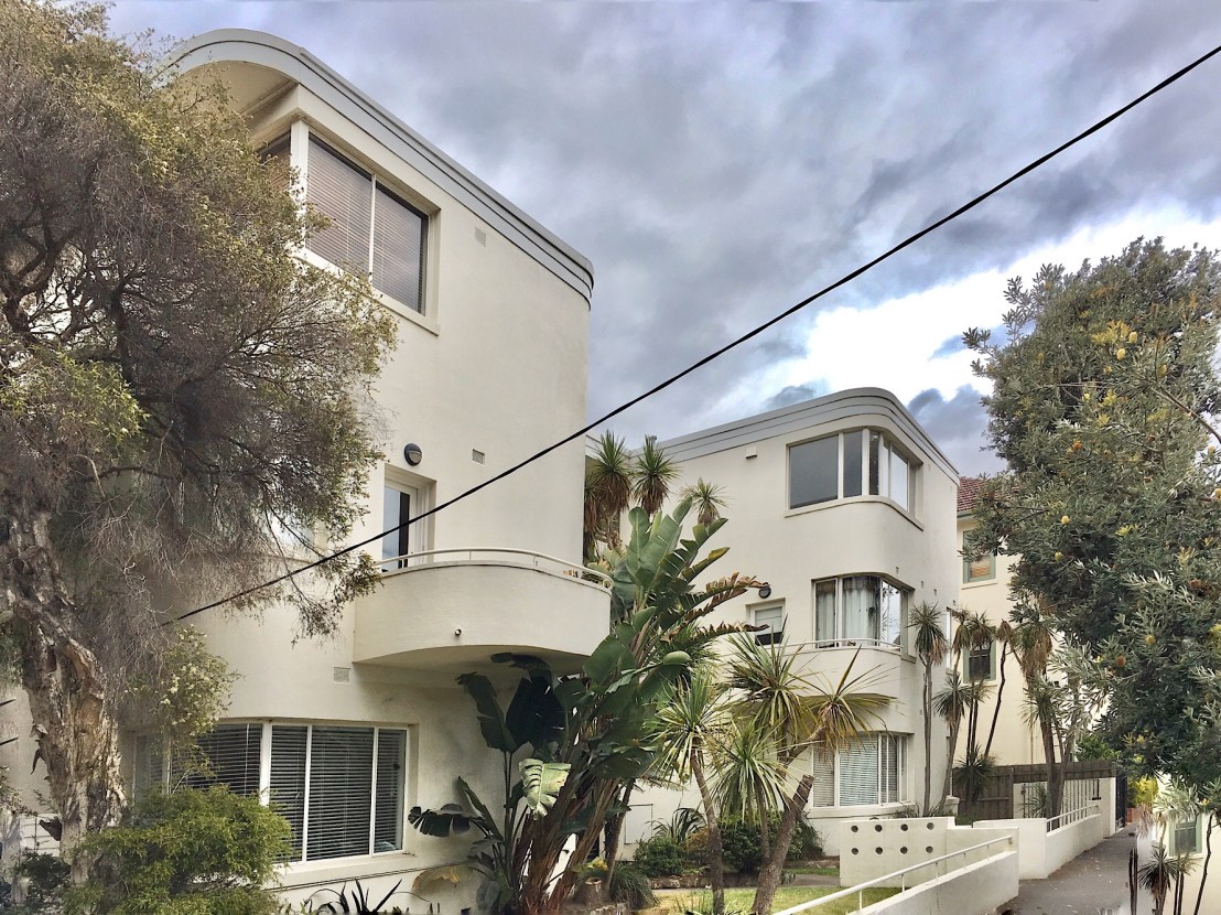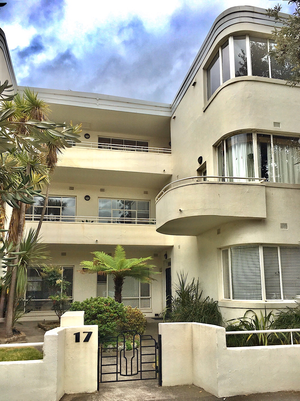 This place in #CowderoyStreet, #StKildaWest looks very typical 1930s #ArtDeco, but it’s 1947 ! Designer unknown. But might actually be earlier ? Ground and first floor are 4 spacious three bed flats, clearly for well off families / empty nesters who didn’t want a house, but liked the idea of being near the beach. But the top floor is 4 one beds, with no balconies or curved corner windows, maybe that floor was added in 1947, and the original part is …1937? Update : my contacts tell me yes it was two floors of four big flats built in 1947, owner and possibly designer David Mrocki, and then the top floor added in 1966, by Ernest Fooks !