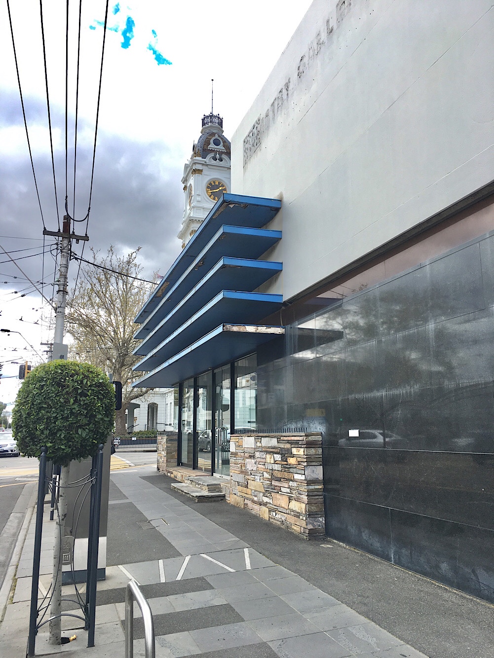 I remember passing by this in #GlenferrieRoadMalvern as a kid – guess it was so unusual it made an impression ! Built 1959 as an #ESandAbank, designed by #StuartMcIntosh, their in house architect who did a number of other outstanding ones (including Moe if anyone is ever there!). I went to the hearing at #HeritageVictoria which listed it in the 90s, but at the same time they gave the owner (who looked very angry, and said something about ‘my retirement fund’) a permit to remove the bottom fin and much of the stone plinth, against my protests, supposedly to make it easier to let – which it doesn’t really, shops seem to come and go – it would be best as an office, or maybe a jeweller. Also a bit surprised that the fins are made of plywood.