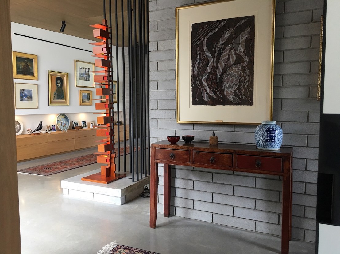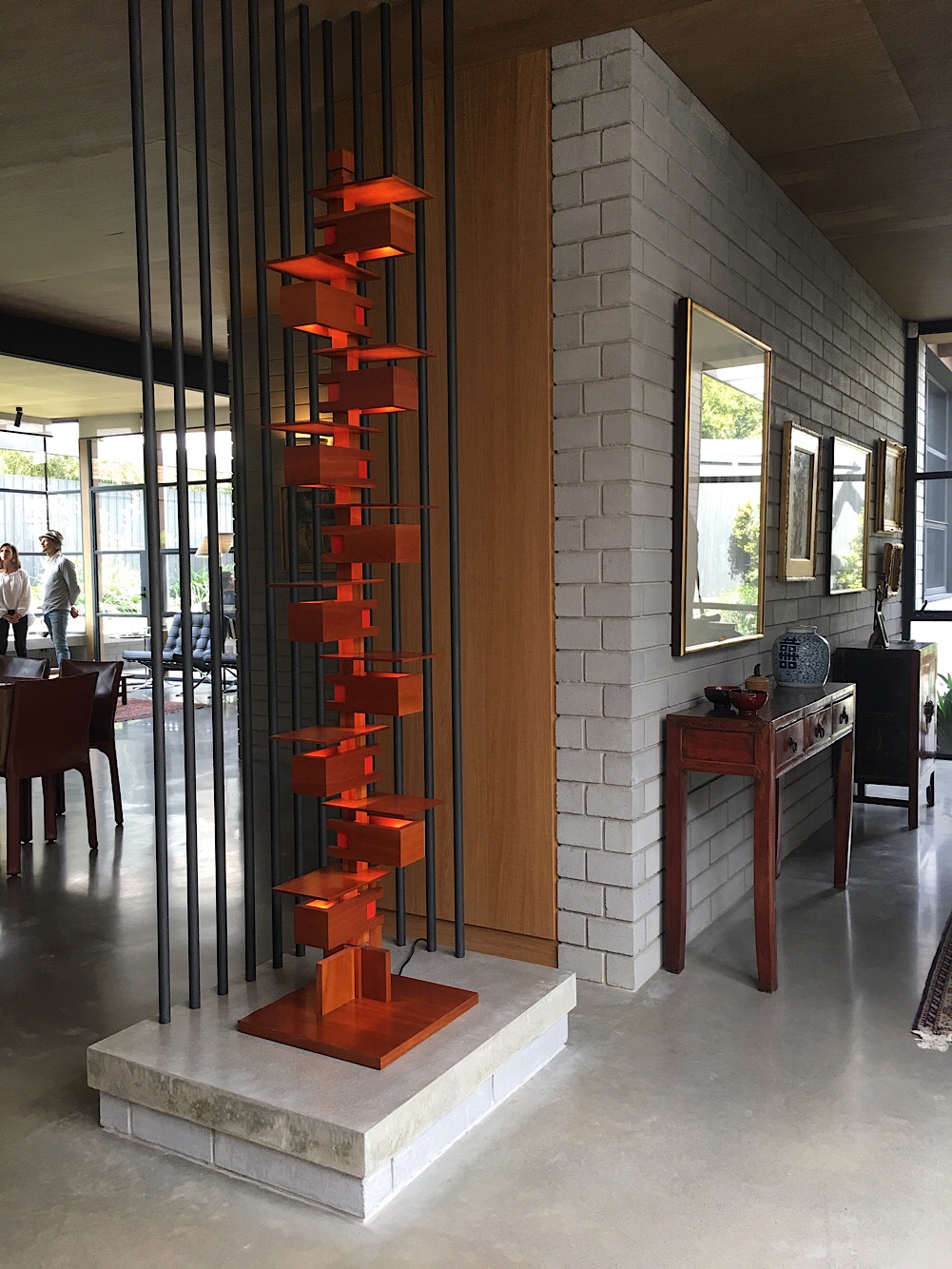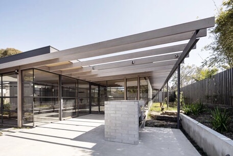Rather extraordinary house – part of the @beaumaris_modern open day that completely channels the 60s, with I think a fair dose of Sydney 60s guru #NevilleGruzman, lots of beams and black gridded #steelframedwindows. Designed by @zenibaker, complex 2016. I thought it was great ! Very livable, gardens out every window, but maybe just a bit too open plan ? I liked the almost white bricks, a bit nice than the typical 60s grey #cementblocks.