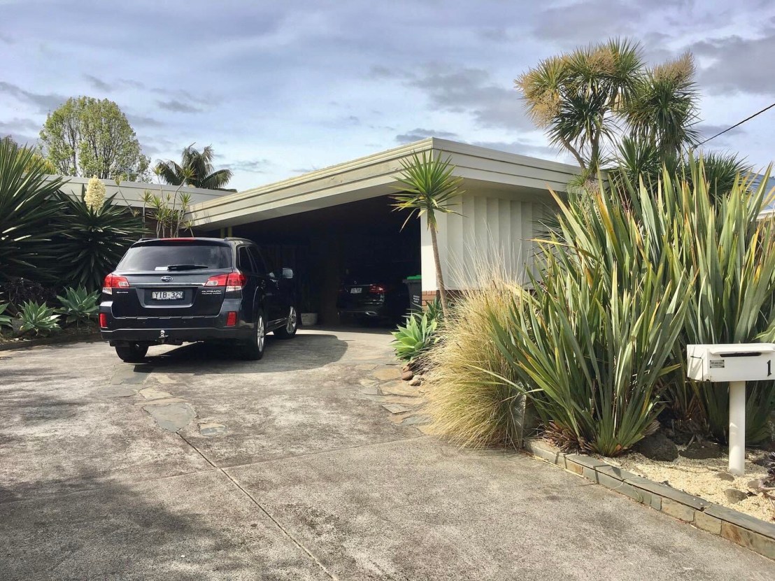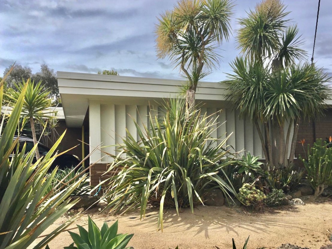 Very Palm Springs ! But it’s 15 Bellaire Court, #Beaumaris, another house by #MaxSachs, but this one has the carport across the front, with a screen wall, and lots of desert plantings, giving it a very Palm Springs look.