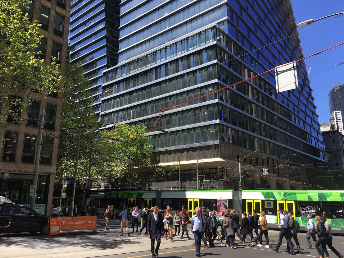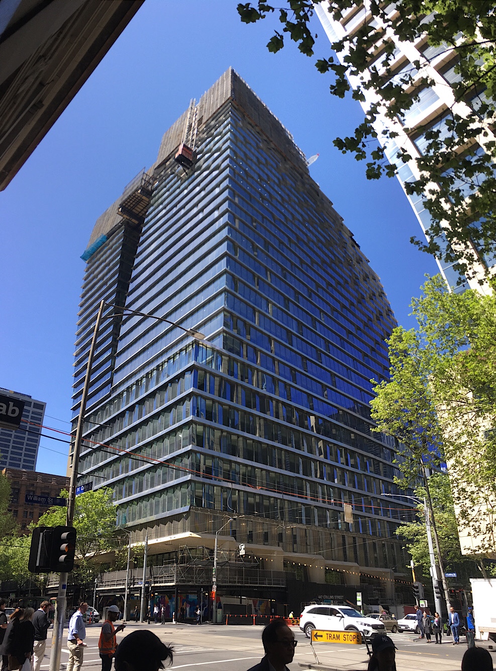 There just isn’t an angle that makes this look good – maybe from 20 floors up ? It’s massive, solid, sharp and shiny, quite at odds with everything around. Makes the demolished 1965 #NationalMutualPlaza look elegant. It’s an arch, but you have to stand right in front to see through. Other angles it’s just walls. Supposed to be a ‘park’ in one corner, looks like it’ll be tiny. Plus some steps to sit on under one leg. Designed by @shoparchitects with @woodsbagot.