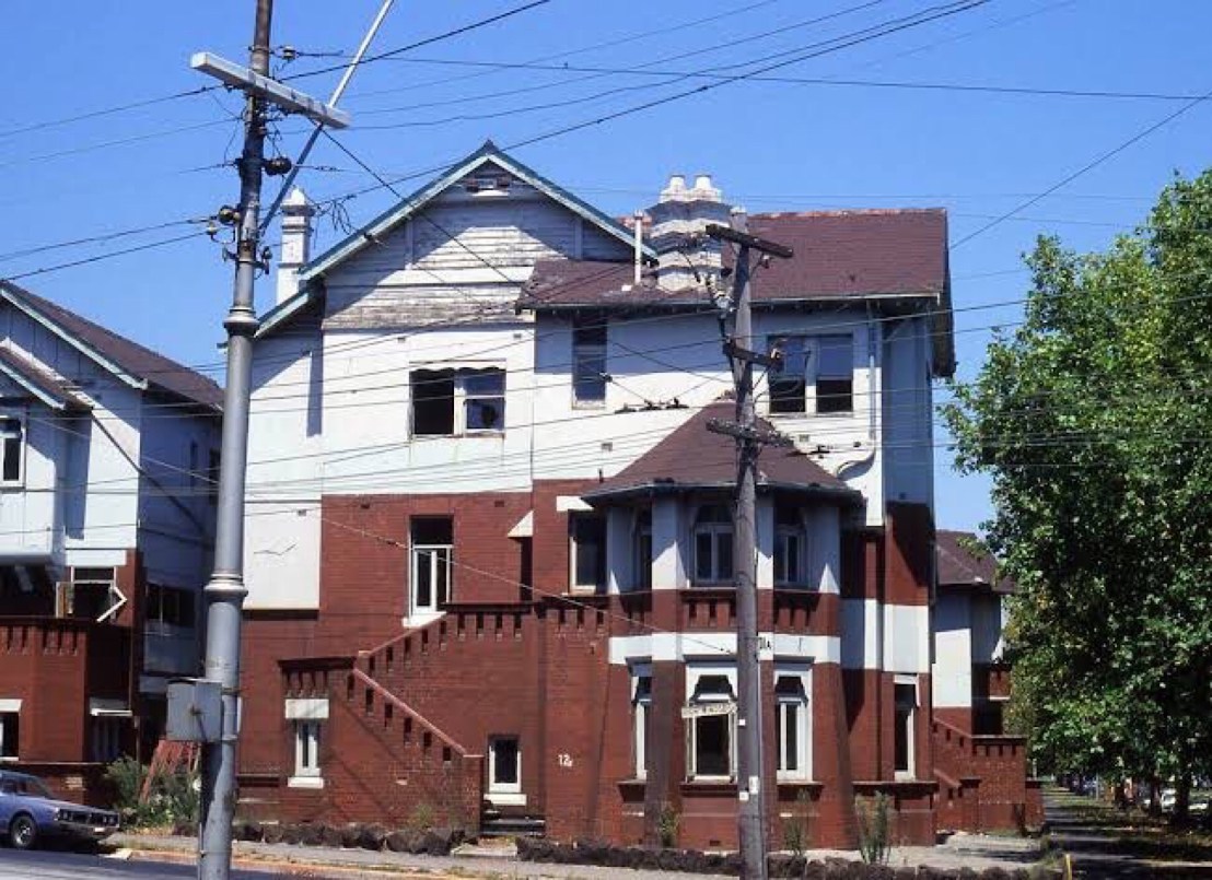 some Lost Melbourne- The exotically named Florida, #StKildaRoad, corner High Street, demolished way back in 1982 (when fortunately it was photographed by Graeme Butler). It was built in 1916, during the first wave of flats in Melbourne, from just before WW1. It was designed by #NahumBarnet, towards the end of his career, but was perhaps the first really stylish block, since the others tended to rather severe red brick. Its Edwardian style, with some Bungalow/Arts & Crafts influences. Solid yet varied. A great loss. The 4th photo is of the back of the front block, the space behind called Florida Ave. The last photo is of the ‘tower’, which was the water tank. The top floor in the first photo appears to have been added at some point. It was replaced by a pomo office block, itself now replaced by the boot-shaped ‘St Boulevard’ 🙄
