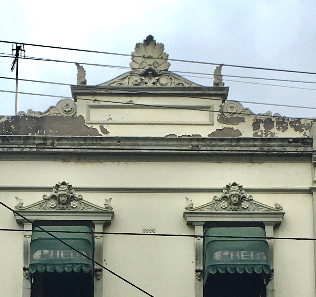 It pays to look up sometimes ! Spotted on #BridgeRoadRichmond, some #highvictorian deliciousness, everything scrolled and curly, lady faces in the #pediments, and a great serrated explosion of an #acroterion on top ! And all in green.
