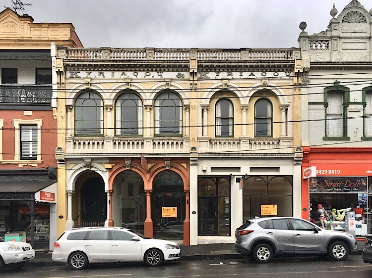 A shot from just ‘before’, interesting shops on #BridgeRoadRichmond, showing various probably early alterations; the arches upstairs presumably originally verandahs, so infilled, one lot with just windows, the other with wall and window inset (or I could be wrong, perhaps always like this, but I don’t know any other shops or houses built like this). Also the ground on one side is also verandah arches, implying it wasnt a shop originally, but has prob been one for a long time.