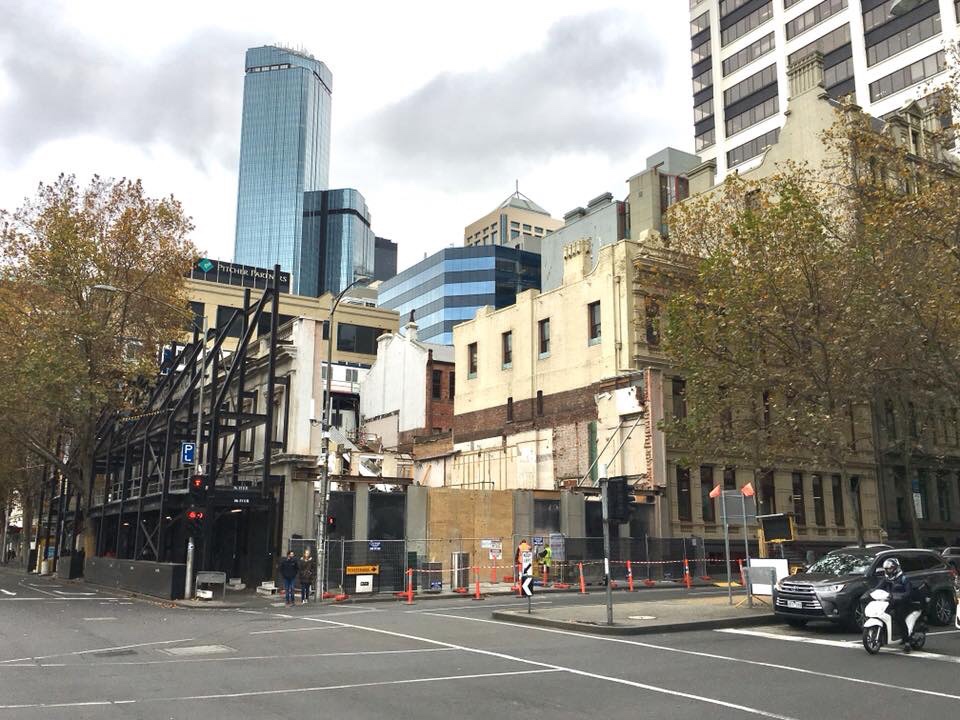The Queen Street facade here is new ! It’s been recently reconstructed to its 1955 appearance, something @melbourne_heritage_action suggested instead of an ‘interpretive’ version. The building started out as offices in 1872, converted for #FletcherJones in 1955, along with that light and dark colour scheme, then the Queen St facade turned into a billboard in c1970, and now the facades have been restored (including the shopfronts!) as the base of a Vibe hotel, albeit nothing left behind them, not that there was anything much left after years of alterations.