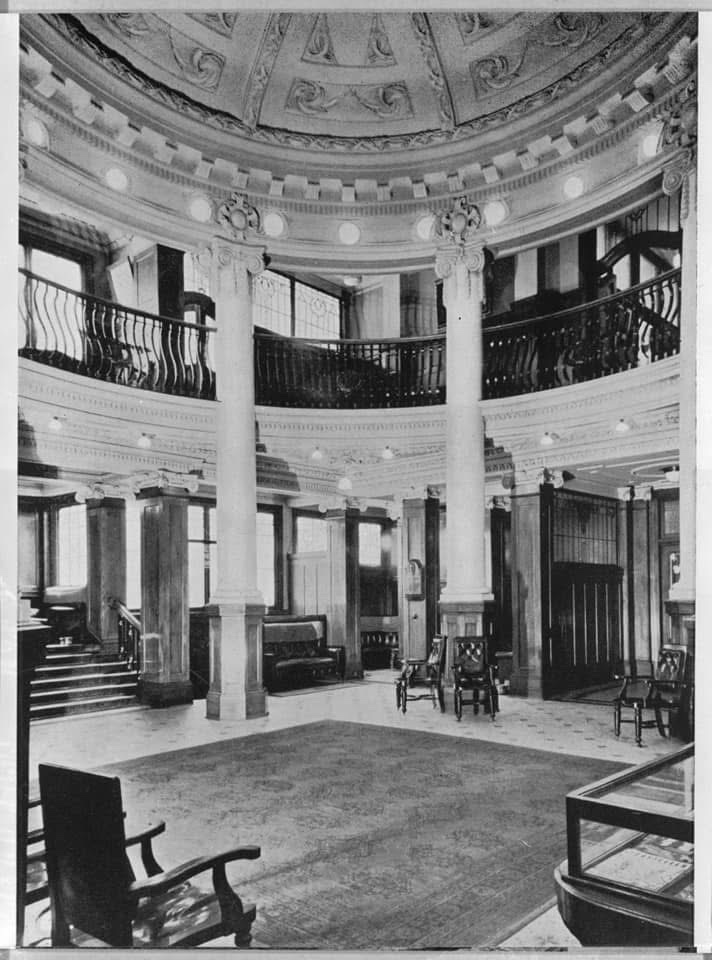 The rather super #domed #hall of the 1914 Commercial Travellers Hotel, designed by #TompkinsAndTompkins. Fabulous tall space, between the reception and the former dining room, in overscaled stylised Baroque. Probably inspired, like the facade, by the big American hotels going up at the time. Hard to believe this whole building was sitting abandoned for about 30 years. I got taken in in the 80s for an explore, and saw this in the gloom and pigeon poop. Like wow. No #chandelier then of course. Cleaned and restored and reopened as a hotel in 1998.
