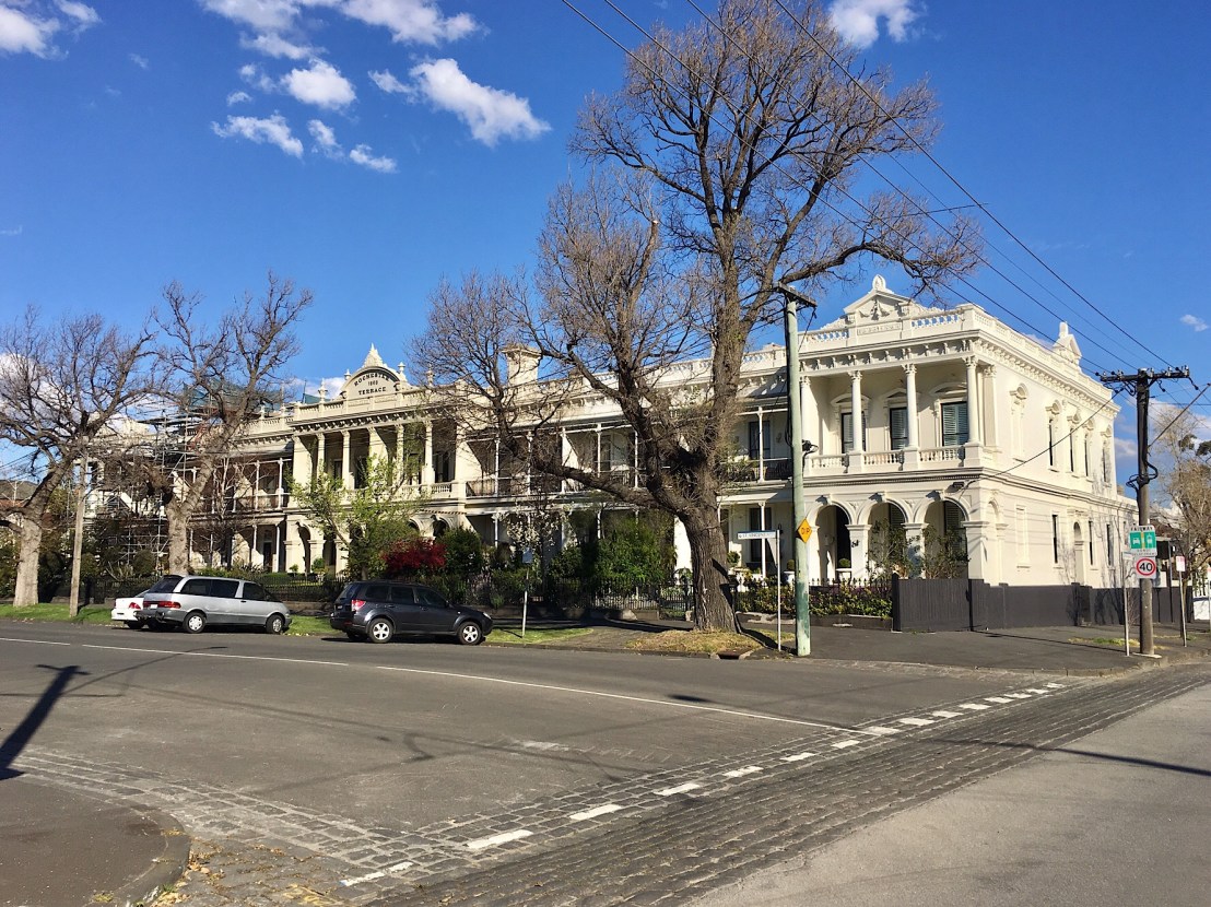 Here’s what I said last time I snapped this one a year ago : #RochesterTerrace, by far the grandest row of terraces ever built in #Melbourne, a row of 10 looking a bit like an elongated #Palladian mansion. Designed by Charles Boykett, who I’ve never heard of, but he did a fine job, though maybe the central parapet pediments are a bit over-sized. Surprised to learn it was built in two stages 10 years apart, the furtherest 6 first in 1869, the rest in 1879. Ps #StVincentPlace is also one block of St Vincent street in downtown Glasgow, named in the early 19thC, doesn’t really explain why this huge development shares the name but does explain why it’s St Vincent Place not St Vincent’s Place.