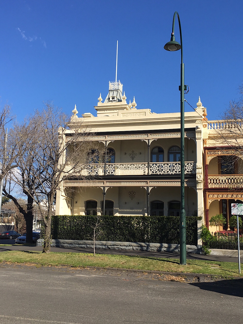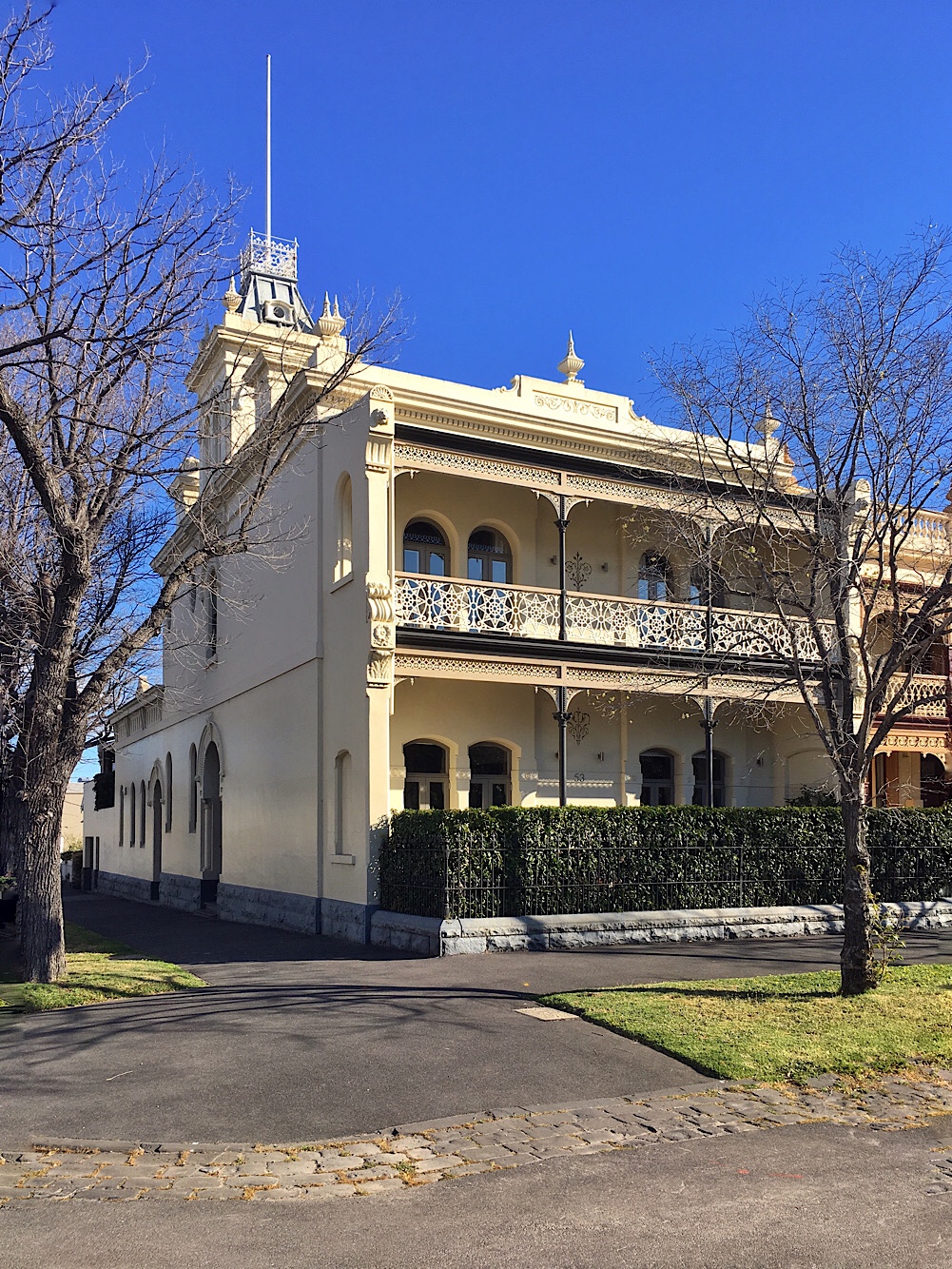 When you build a #terracehouse, but you really want a tower too ! Don’t know date or architect but prob 1880s, when there’s wee popular. Interesting that the front door is kind of hidden down the side, though marked by the tower.