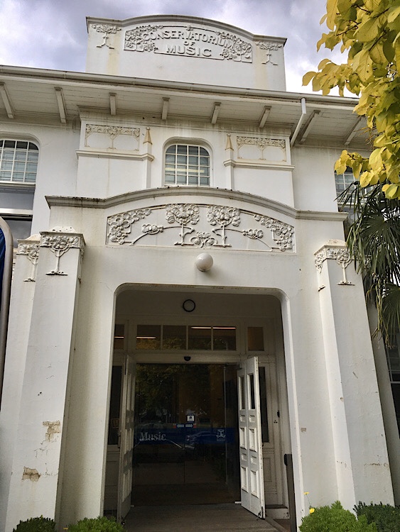 The #ConservatoriumOfMusic at #MelbourneUniversity was built in 1909-10, and has that great #Sezession style vegetal decoration seen only here and there in Melbs; we don’t have that much #ArtNouveau (except for the stained glass windows and tiles in every Edwardian house). This was designed by #BatesPeeblesAndSmart, who were also doing the State Library dome at the time. The foundation stone was laid by #DameNellieMelba, and the hall that was added soon after is named after her. Apparently the side wings were done by #GawlerAndDrummond, the uni’s architects, much later, but they did them in matching style, which is nice.