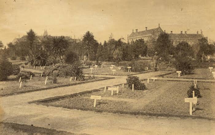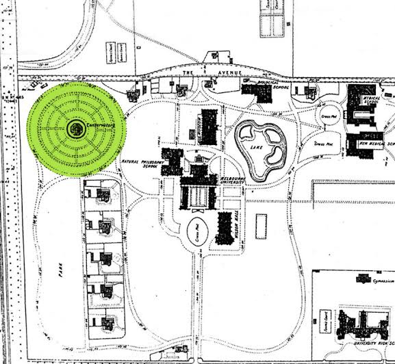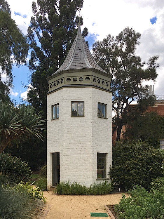 This curious tower thing at #MelbourneUniversity is a remnant of an even more curious c1875 octagonal #greenhouse, which was the centrepoint of the #systemgarden, laid out in 1856; a system garden is essentially a botanical sampler. It was originally about 7.5 hectares, only 2 are left now, and it’s more like a delightful park, with only the first circular path still evident.