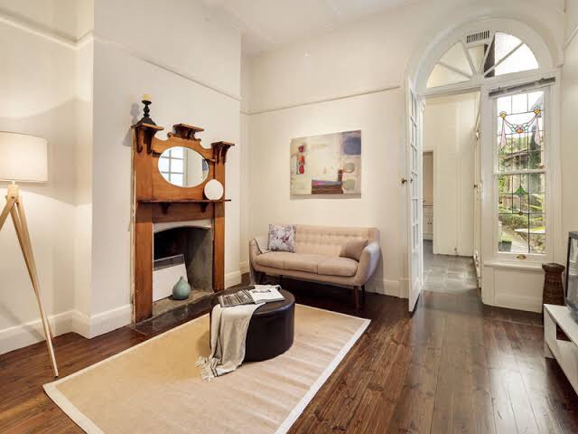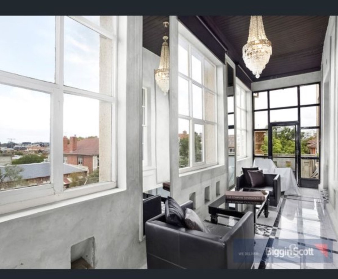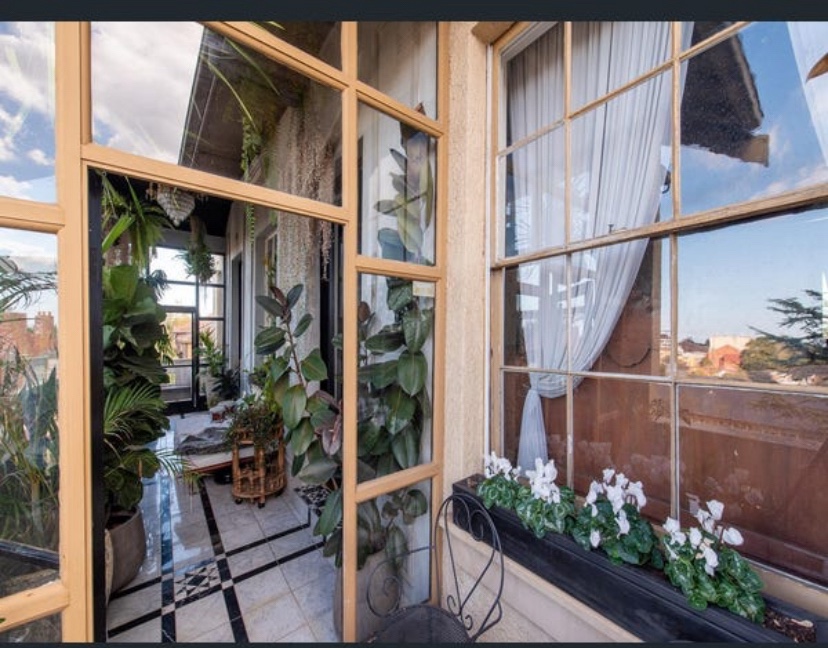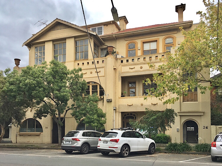 Rearing up in the middle of the otherwise low scale suburban #RobeStreetStKilda is this idiosyncratic pile. It was created in c1920 by rebuilding the Star & Garter Hotel, which was delicensed in 1919; the conversion was designed by AV Gillespie. The hotel was originally a three storey 5 bay thing built in 1854 as Pitt’s, which was added to in the form of a three storey terrace to the right in 1885 (probably). The verandahs were replaced with Arts & Crafts style porches, and the interiors greatly altered, but the late Victorian door to the terrace is largely intact, and the arched entry to the pub is too, while the top floor flat has windows with very fine glazing bars (pic 5) typical of the 1850s, while a ground floor flat (pics 7,8) has the original arched openings and a c1920 fireplace. I’ve always imagined they’d be great inside, and they are; the top floor of the former hotel part is a particular wow (though real estate photos show it was once full of plants, now empty and white compared to 5 to 6)
