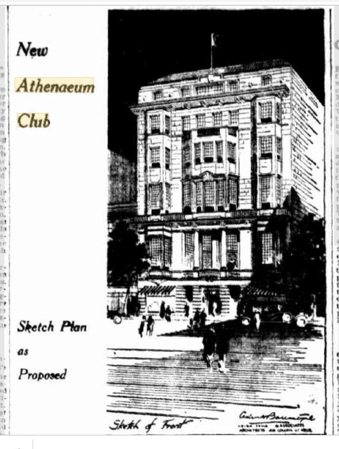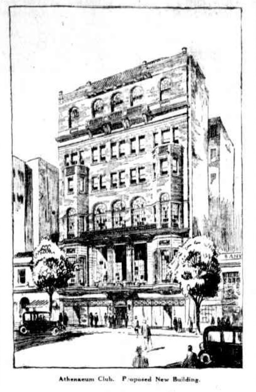 The Athenaeum Club in Collins Street was built in 1929 and designed by architect Cedric Ballantyne (busy with the Regent Theatre at the same time). I think his eclectic composition of Georgian/American Beaux Arts also referred to the Victorian architecture around it at the time, for instance the detail above the first floor windows is a bit too elaborate to be called Georgian, same with having projecting bay windows, and the balustrades at first and second floors.