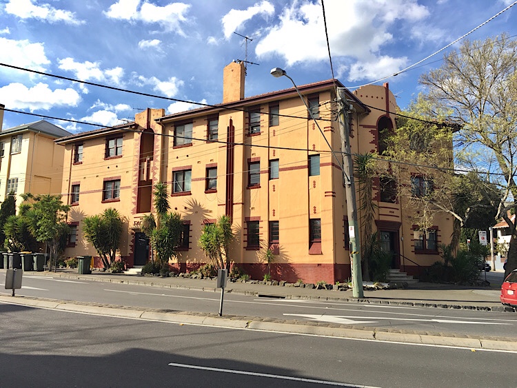 The Pacific, and next door the Atlantic and the Orion, on the pointy corner of Grey & Barkly, #StKilda, built 1934-5, and all by #BernardEvans – doing something that looks a bit like #IGAnderson, who did an unbuilt design for this corner, possibly in his Spanish/Gothic/Deco as seen on the 1930 Brunswick Market. These are built on the site of the created by the demolition of the first St Kilda Town Hall, built 1859.
