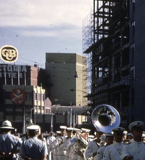 For something that looked down the axis of #SwanstonStreet for nearly 40 years, I could only find one good photo of the #VictoriaBitter #neonsign in 1956, and one supplied by a FB friend, from the late 60s, showing it as I remember it.