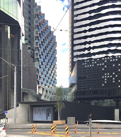 I like #WillamBarak looking down on us, but I’m annoyed by the way the whole redevelopment of the #CUBbrewery builds around the axis of #SwanstonStreet looking north, but also ignores it by encroaching on it and not having anything at all really that acknowledges it – it’s like a series of compromises leading up to nothing (except a tiny tree). At the least CUB had a huge neon sign for decades. Update : I’m told that after the 90s master plan that kept the axis, with access up through, then another was drawn up that crowded it, with two buildings at the back in a pincer movement, leaving just a slot. Not a better solution than leaving a wider gap, and the other isnt built yet anyway.