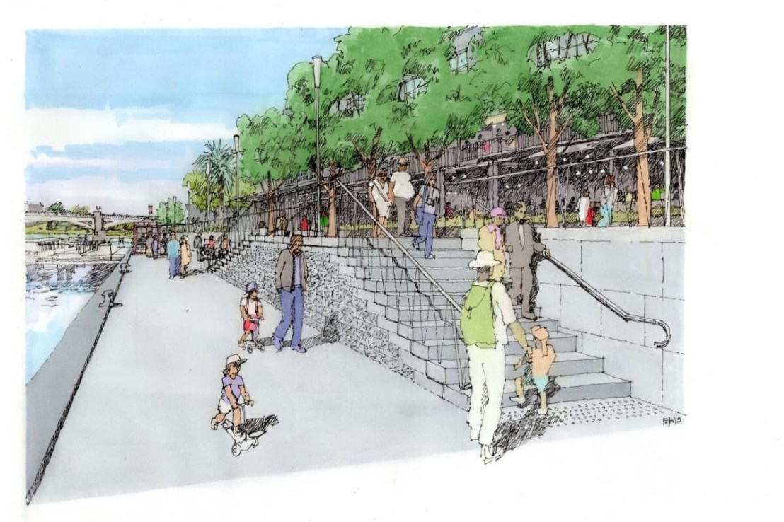 I think the #SouthbankPromenade is great – but is it worth preserving ? Designed by #DentonCorkerMarshall, and built in 1990, it was the first stage in the creation of Southbank as new public space, along with the #EvanWalkerFootbridge, but it seems that the @cityofmelbourne is planning on sweeping changes. No more of the nice traditionally inspired lamps or patterned balustrade, just standard lamps and zigzag balustrades in low maintenance stainless steel 🙄 The paving definitely needs replacing (it’s just concrete pavers), and it would be nice to add better ramps and turn the stairs sideways to increase the promenade width, but no need to replace everything surely? And if you do, then how about something with a bit more delight ? Maybe commission new architects to have a go, or even a competition!