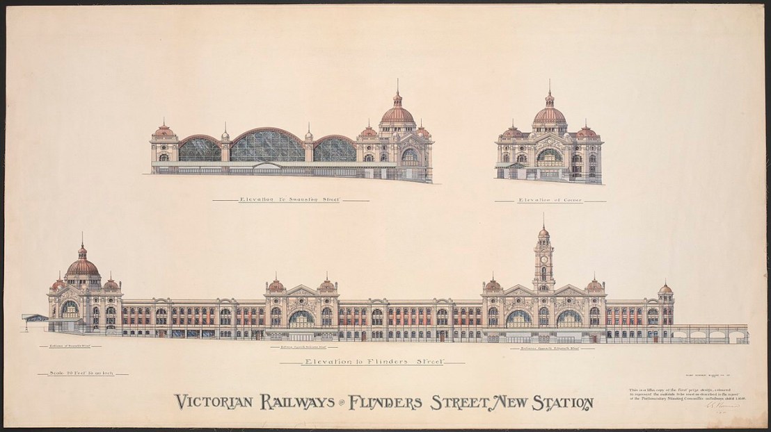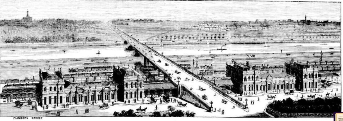 Did you know there was an earlier design for #FlindersStreetStation ? I did but I’d forgotten what it looked like – so here it is from the Illustrated Australian News on 16 May 1883. It won a design competition, and clearly the idea was to have east and west trains from the different sides (I guess?), and rebuild #PrincesBridge at the same time, though that design didn’t happen till the next year (I think). The architect was #WillamSalway, and it’s very typically #RenaissanceRevival.