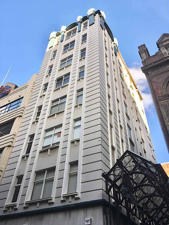 The #DisplayBlock in #LittleCollinsStreet was an unusual response to the highly central site – it was built in 1921 as vertical shops, with only display cases on the ground level, advertising the 20 business upstairs (by ‘rapid lift’), all devoted to women’s wear, milliners, lingerie, dressmakers etc. Some of it was intact in 1985 when heritage consultant #GraemeButler took the last two photos – very annoying that despite it being in a heritage precinct by then, the #ArtNouveau sign on the front has disappeared, just the side one left, partly obscured by the 90s canopy.