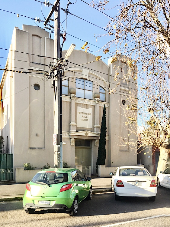 The #PortMelbourne #FreemasonsHall in #liardetstreet is great, a bit #ViennaSecession, or maybe just jaunty Edwardian. It’s 1917 obvs, but that’s all I know. Update : there’s a foundation stone behind that tree, the honorary architects were CEMerrett and supervising architect Frederick J Brearley, both of course were members and both also seem to have worked at the state bank.