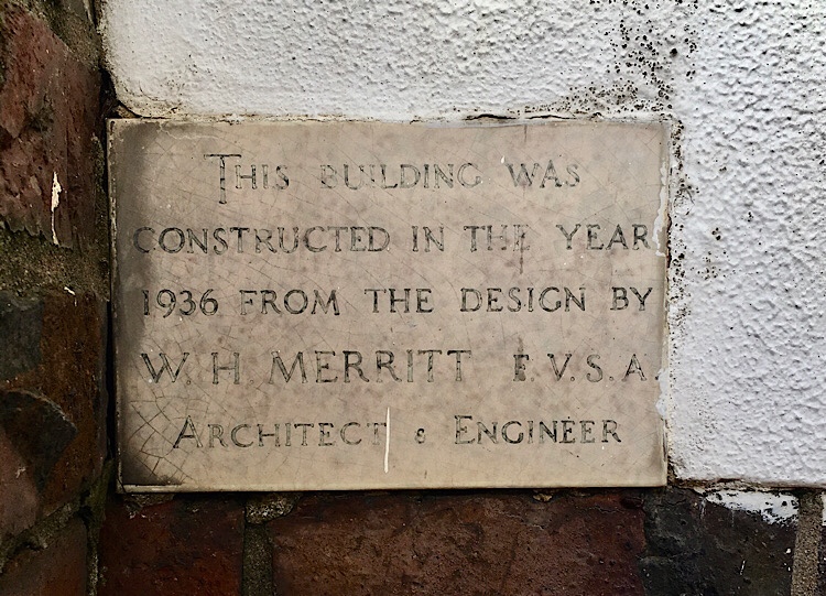 Update : thanks to info from the Art Deco & Modernism Society, it’s WHMerritt, 1936. And seems there’s a plaque near the door with that info, so I’ve now got a photo of it.