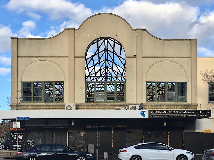 Sad sight on #BayStreetPortMelbourne, been this way since a fire in 2015 (I think). Its yet another surviving (partly) very early cinema, being built as the Port Theatre in 1913, and closing in 1956, and used for retail ever since. In 2018 a permit was issued to build a tavern within the walls, while also reinstating the facade side curves, but I guess it didn’t stack up.