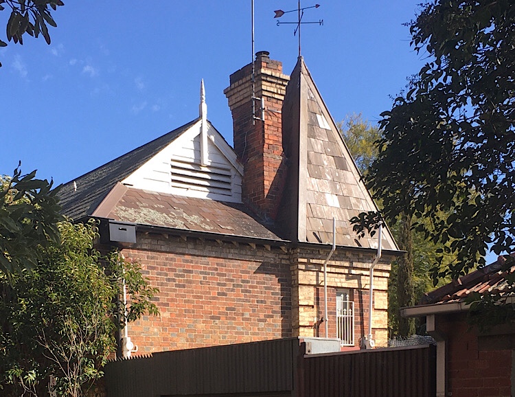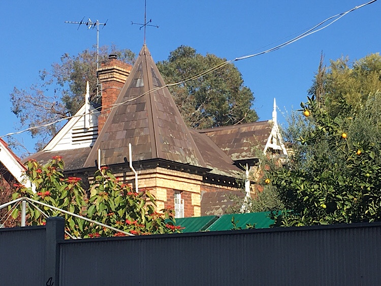 Not my photo – because in my photos taken from the lane (2-3) you can’t see much – this is the slightly famous #DalgetyLane #coachhouse in #StKilda, built for the large very early terrace I posted not long ago at 37 #DalgetyStreet, which for some reason had a block 5 times bigger than the others. The coach house was built ‘before 1873’ (but I’d guess 1880s) and its pretty good, with #creambrick #quoins and #rusticated base, turret, Flemish gable, very picturesque. On its own half block, sold for $1.6 mill 4 years ago.