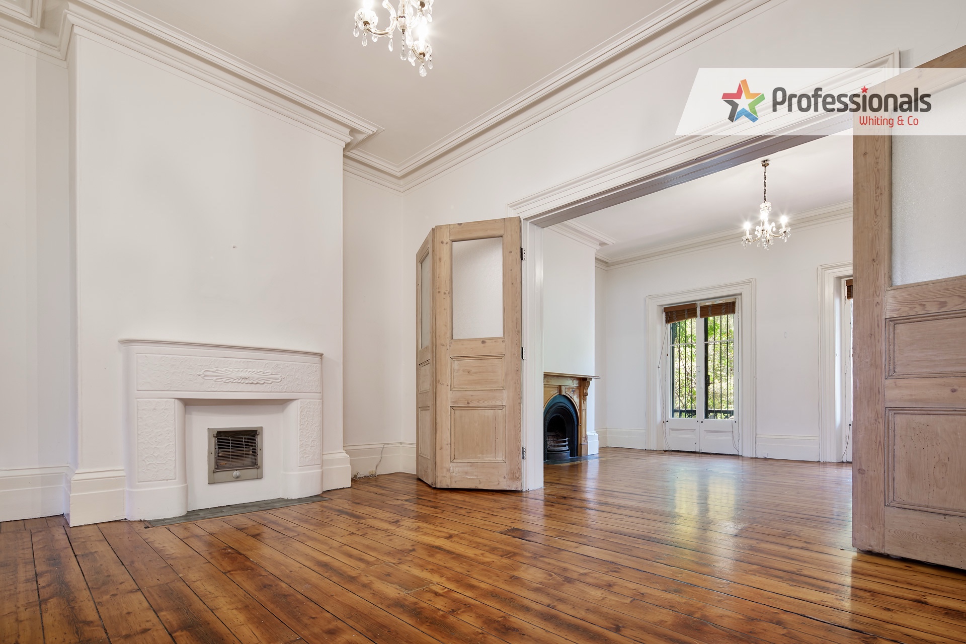 The conversion was a bit iffy, bedrooms and kitchens were added to the rear, so the rear of the two main rooms doesn’t have a window – but on the ground level there’s big doors between.
