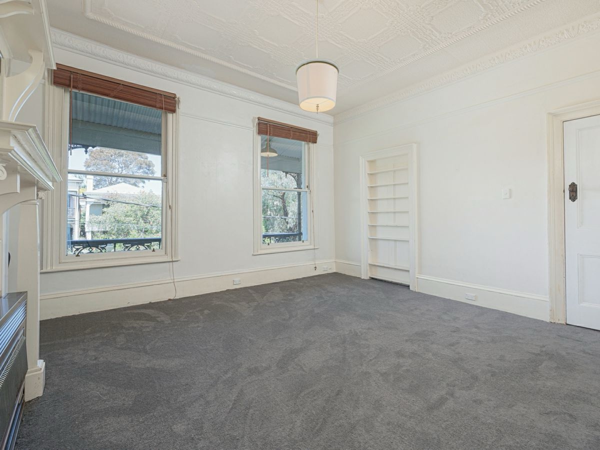 Like many Victorian terraces and houses in #StKilda, the whole row was converted into flats in 1917, designed by Sydney Smith & Ogg, with one per floor, including semi-basement ones, but at least they open onto the back. They must have moved the stairs at that point, so they’re now simple timber ones. They have a v nice communal garden to the rear.