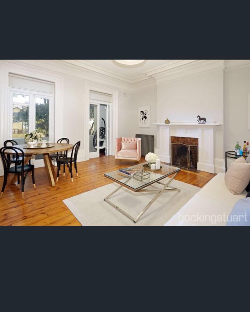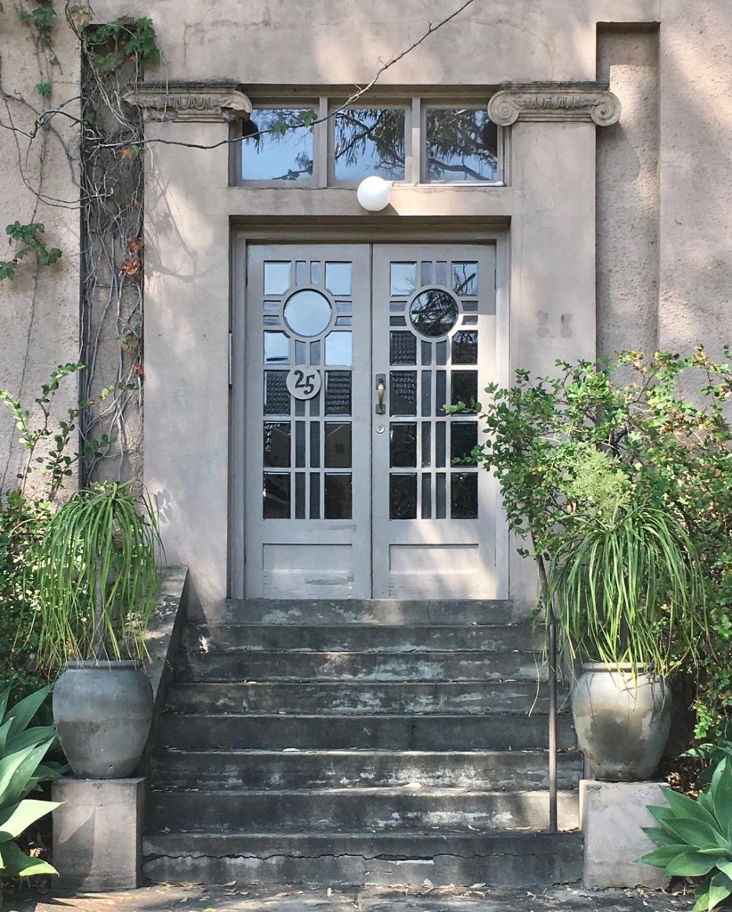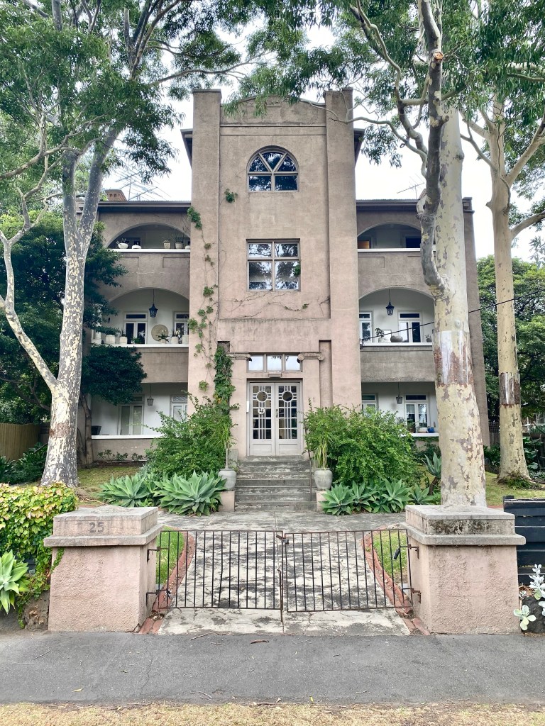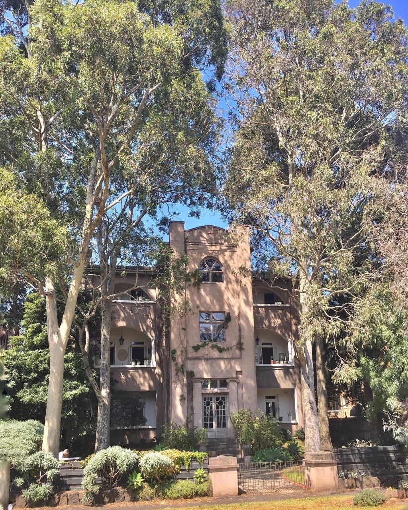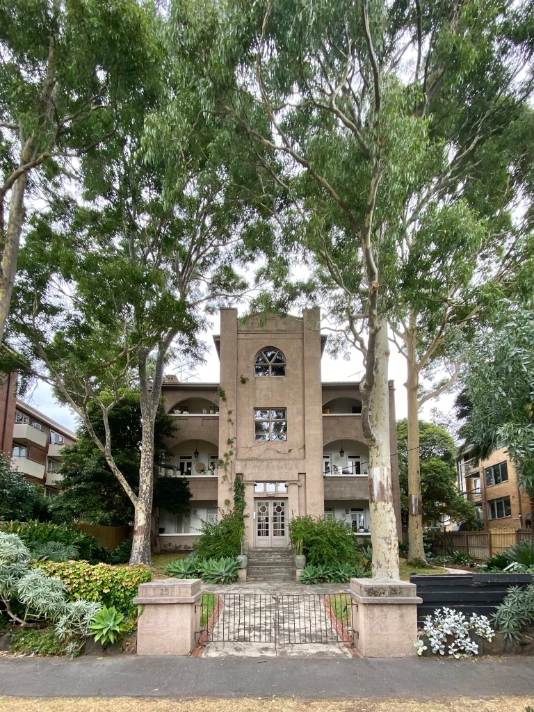 Very impressive flats in my street, and equally impressive #gumtrees, a great combo. This is one of the many #StKildaFlats made out of older buildings. This started out as a pair of very spacious 12 room three storey #terracehouses, possibly built as early as 1863, known as “Lansdown Place (1 and 2). By 1896, after the wealthy had mainly moved on from St Kilda, they were known together as ‘Llanberis’, with rooms to rent, with ‘stabling and hot baths’. In 1920, they were advertised for sale as a pair of larger 12 rooms houses used as flats, but also noting that they could be “converted to large, modern residential flats”. Perhaps soon after that was exactly what happened – the verandahs were replaced, a stair put in the front, and each floor became two flats, with some of the Victorian details inside retained. The rear wings also became separate flats, two on each side. Real estate listings call it St Margaret’s now. The front ones are very tightly held, none sold since 2016 ($815,000 even back then), and sometimes they have lunches in the front yard (I barely know my neighbours). Update March 2023: I do know a lot of my neighbours now.
