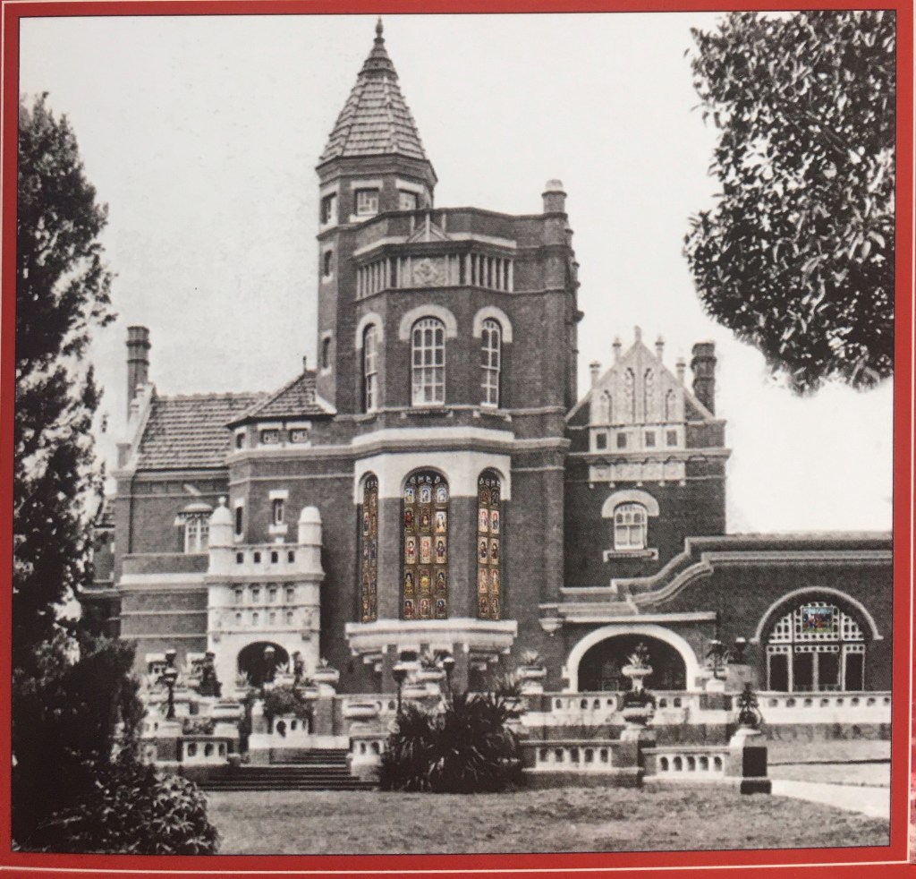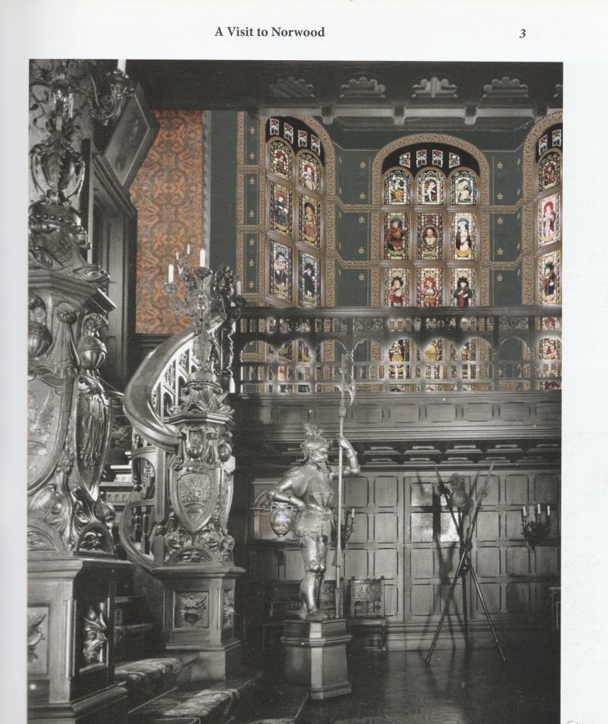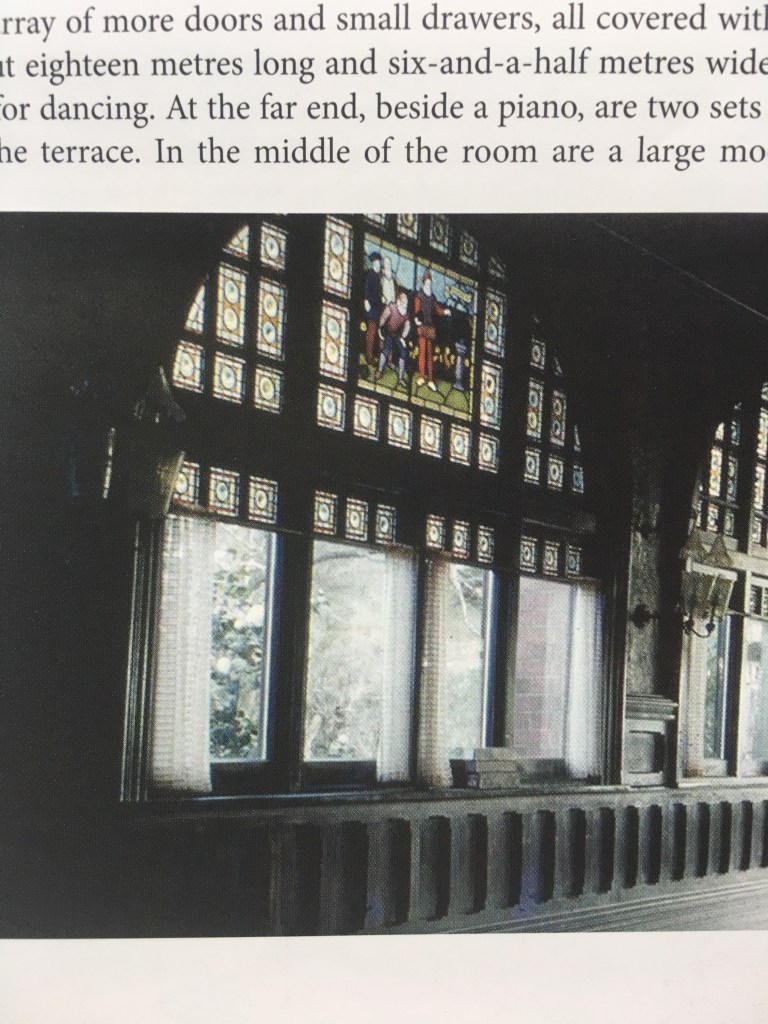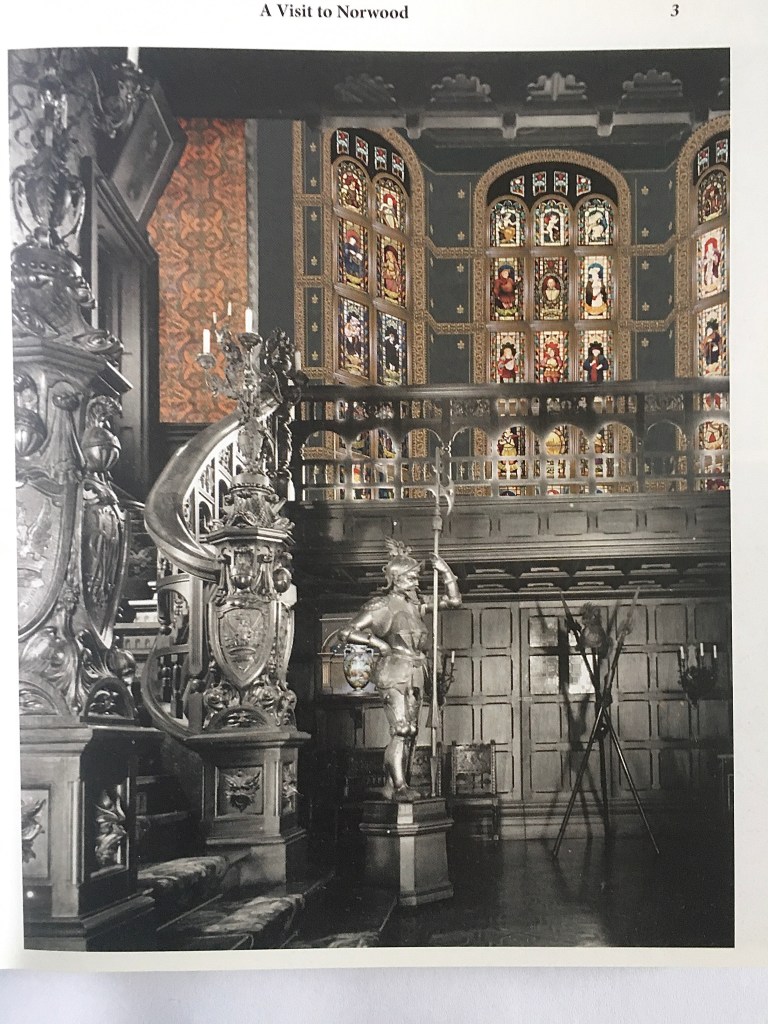 Norwood, Brighton, 1891-2, demolished 1955 – definitely the most weird and wonderful mansion of the #LandBoom era. The exterior was a mashup of Queen Anne and Tudor, but inside! The hall was very much in the baronial style, complete with bronzed knights and a tiled fireplace, the drawing room low Romanesque arches, fireplace ‘nook’, and elaborate marquetry floor and coffered ceiling, the dining room with coved timber driving and giant wrought something chandelier ! The conservatory was fully tiled, there were lots of #stainedglasswindows (eight of the main Shakespeare set now at Trinity College), and a curious marble Roman bath, off a windowless bedroom downstairs. And a ballroom that you could only bet up from a terrace or a bedroom – either it was added during construction or the plan is guesswork.