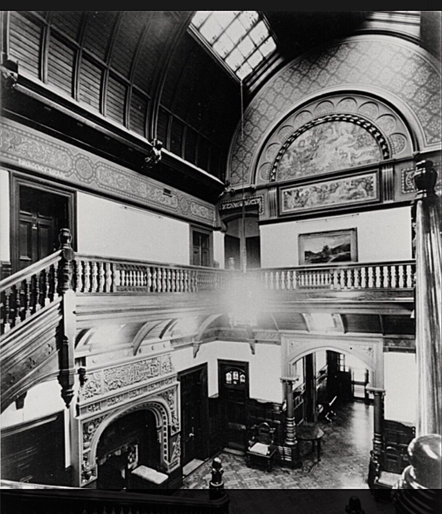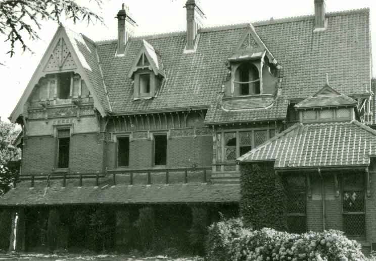 Byram, Kew, 1888, t one of the most fantastic #lostmansions ever built in Melbourne. A fine essay in the Queen Anne style, and very much as practiced in the US (#stickstyle), creating a precursor to the later local Edwardian style (see the fat verandah #turnedtimber posts?). It was designed by #EGKilburn (of #EllerkerAndKilburn), and had it not been demolished in 1960 he’d be much better known I think. It was built for industrialist George Ramsden who died in 1896, the family selling in 1902, when it was renamed Goathlands. It went through a few owners, and name changes, including the O’Loughlin family 1915-26, who called it Tara Hall, the Ryan family 1927-41, then apartments, then a hostel for nurses from the women’s hospital in 1946. (Info from here). When they sold it in 1960 it was demolished for house lots – it was near Kew junction, where Tara Ave ends now. It was extensively photographed by #MarkStrizic in 1959 thank goodness, most of the following images are his, some via @library_vic some #KewHistoricalSociety (who retain copyright), donated by the author of Lost Glories (1986), and he got them or copied them from the hospital. Image 3 is from National Trust Vic, also last photo, which appears to be during demolition.