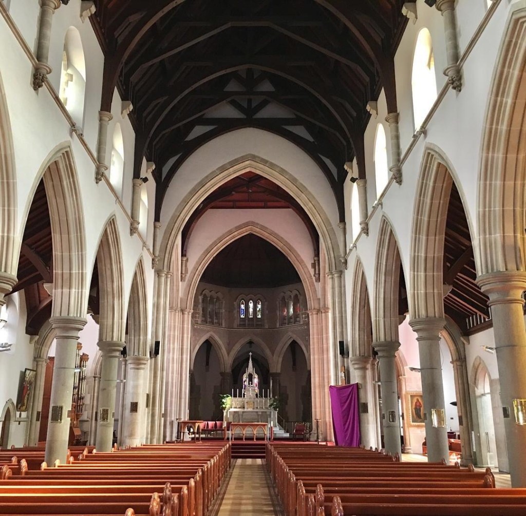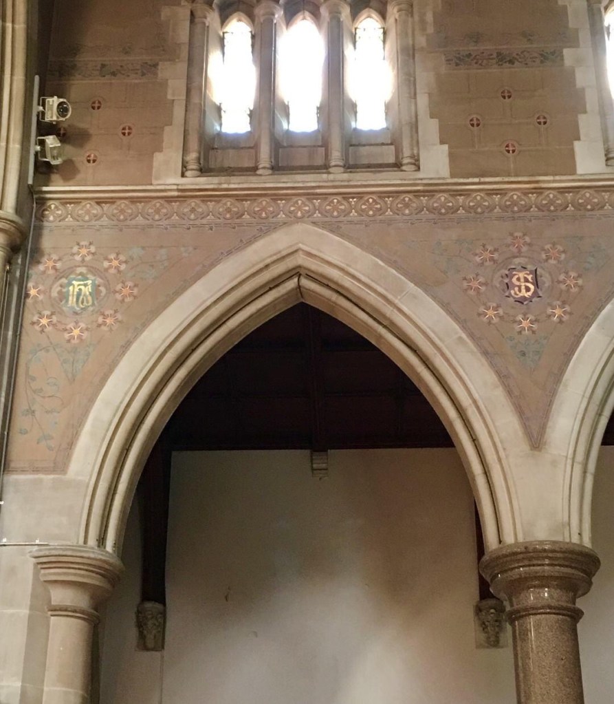 StIgnatiusRichmond, inside. I was expecting something more ornate from our major #GothicRevival church architect #WilliamWardell, but like his always classical public buildings, it exhibits ‘competent conservatism with simplicity of line and plainness of decoration’, nothing like high Victorian polychrome I like, for instance inside Butterfield’s #StPaulsCathedralMelbourne. The best bit is the attached side aisle or whatever it is, though the glass wall rather ruins the spatial effects. @ St Ignatius Catholic Church