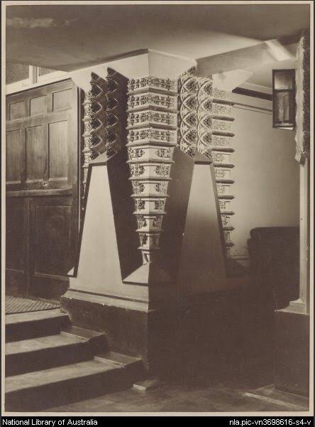 Last image is a table now in @ngvmelbourne collection. Info from the very thick ‘the griffins in Australia and India’, 1998, photos @nationallibraryaus, arranged – main room, ‘fountain room’, then ‘fern room’ (the fountain was actually between them). The last revamp of the arcade in 2019 finally deleted the use of ‘Australia’ from the site.