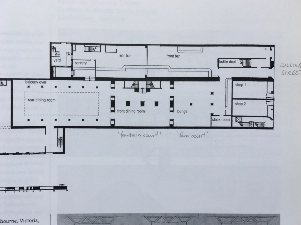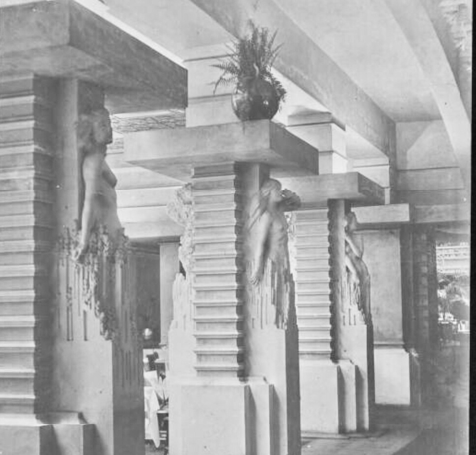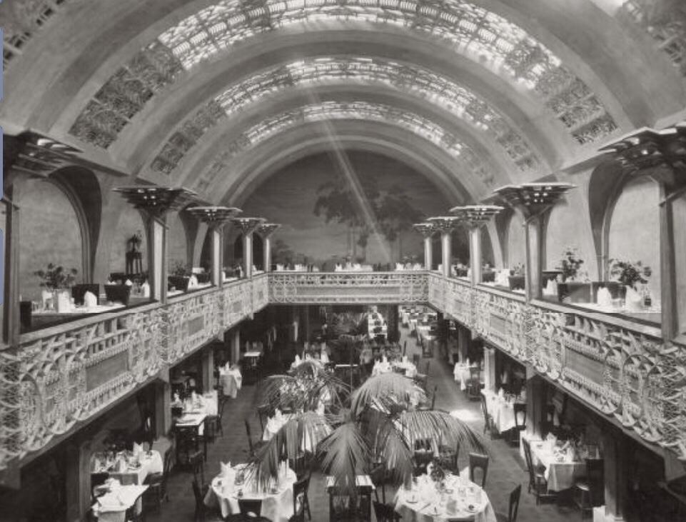 There were three rooms, culminating in the great skylight vaulted main dining room. It’s sometimes said this room was saved and incorporated in the 1939 Australia Hotel, but no that was a new stylised version, and a floor higher up.