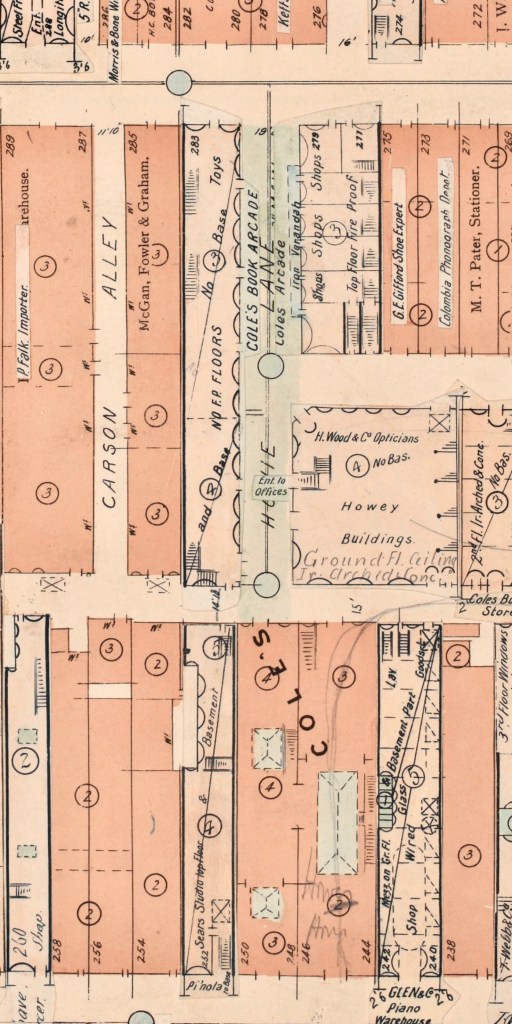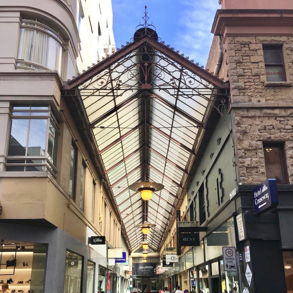 Thanks to followers for pointing out that this beautiful glass roof was part of #ColesBookArcade ! Or rather, it was a roof over Howey Place, a public laneway that ran next to an 1857 building that he leased in 1906, adding to the ever growing store in 1906. He opened out the side wall into a long series of windows, and added the roof in 1907. It connected through the rear of a shop facing Collins Street that he also leased, extending the original famous 1883 arcade facing Bourke Street through a whole city block. The energetic and eccentric E W Cole sold not only books (new and used) but china, toys, and loads of other stuff, which finally closed in 1928. You can see that bits of the #artnouveau #wroughtiron were maybe gilded, and there’s the #signboard that I remember was still there in the 90s, but it just said Howey Place then. Pic 4 is the Collins Street frontage in c1910. Pic 5 is the sign in maybe the 70s via an FB follower. (2024 update : in April the city of melb with the EW Cole foundation put up a sign based on one that was within the store, amazing that a place that closed so long ago is still remembered. However, they’ve used ‘Victorian’ typeface when the original was sans serif. Just saying…)