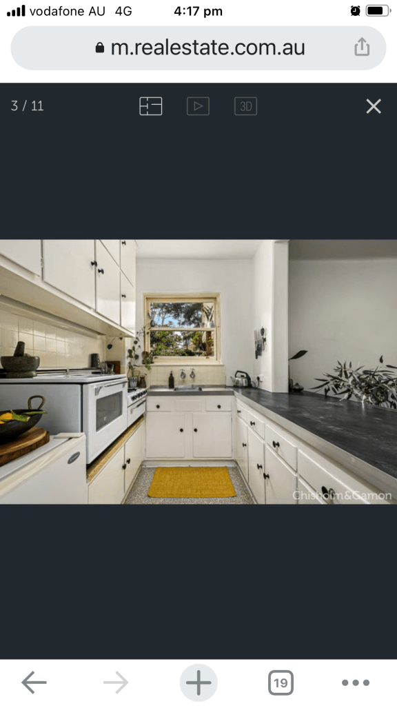 Interesting block of flats on the edge of the Elwood shops in Ormond Road, I could tell it was 50s or maybe late 40s, like prewar but with jaunty 50s things like the porch and stair railings. The agents sales blurb actually says ‘by noted architect #SirBernardEvans’ who did many flats from the 1930s into the 50s. Another source says these are 1951, so I was close, and Evans dud other blocks for the company that built this, so likely Evans.